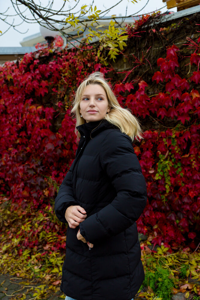 Kraftig, vattert parkas med avtagbar hette, helfôret med sydde, brede kanaler. Laget av sertifisert resirkulert polyester som er vind- og vannavstøtende (WP5000/MVP3000). Parkasen er etterbehandlet med Bionic Finish Eco, som gir en vannavvisende effekt. Parkasen kommer med skjult glidelås som går opp i kragen, og frontlommer med glidelås og klaffer. Tre innerlommer, hvorav den ene har glidelås. Kraftig, skjult strikk rundt åpningen i hetten og ekstra mansjetter i ermeavslutningen. Innsvinget modell med snøring i midjen.