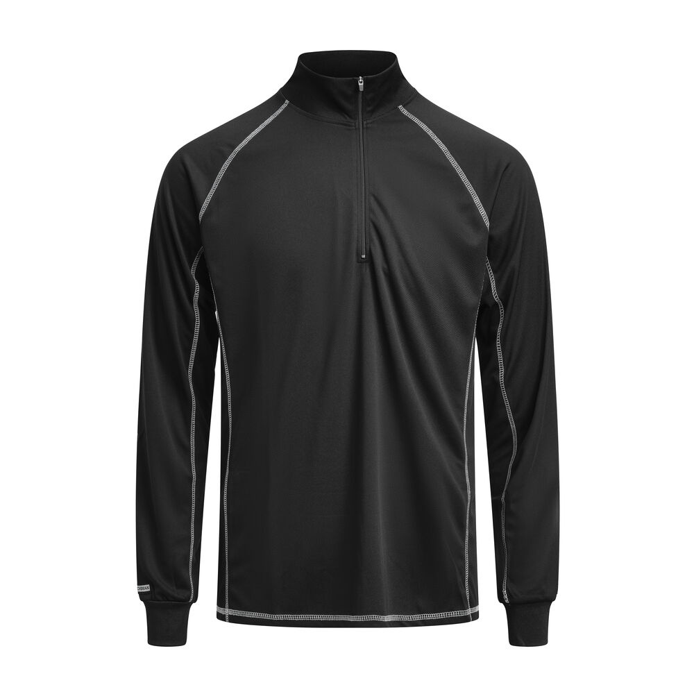 Trøye med forlenget rygg og polokrage med skrå glidelås som ikke gnisser mot halsen. Longs med Y-front. Elastiske sidepartier. Materialet Dry-Tech™ er utmerket som lag 1 ved påkledning lag-på-lag. Det består av mikrofibre som transporterer bort svette fra kroppen og sprer den til et større område, den såkalte "Vicking effect". De mikroskopiske svettepartiklene dunster deretter bort lynraskt. Kroppen forblir tørr, og man føler seg vel hele dagen.