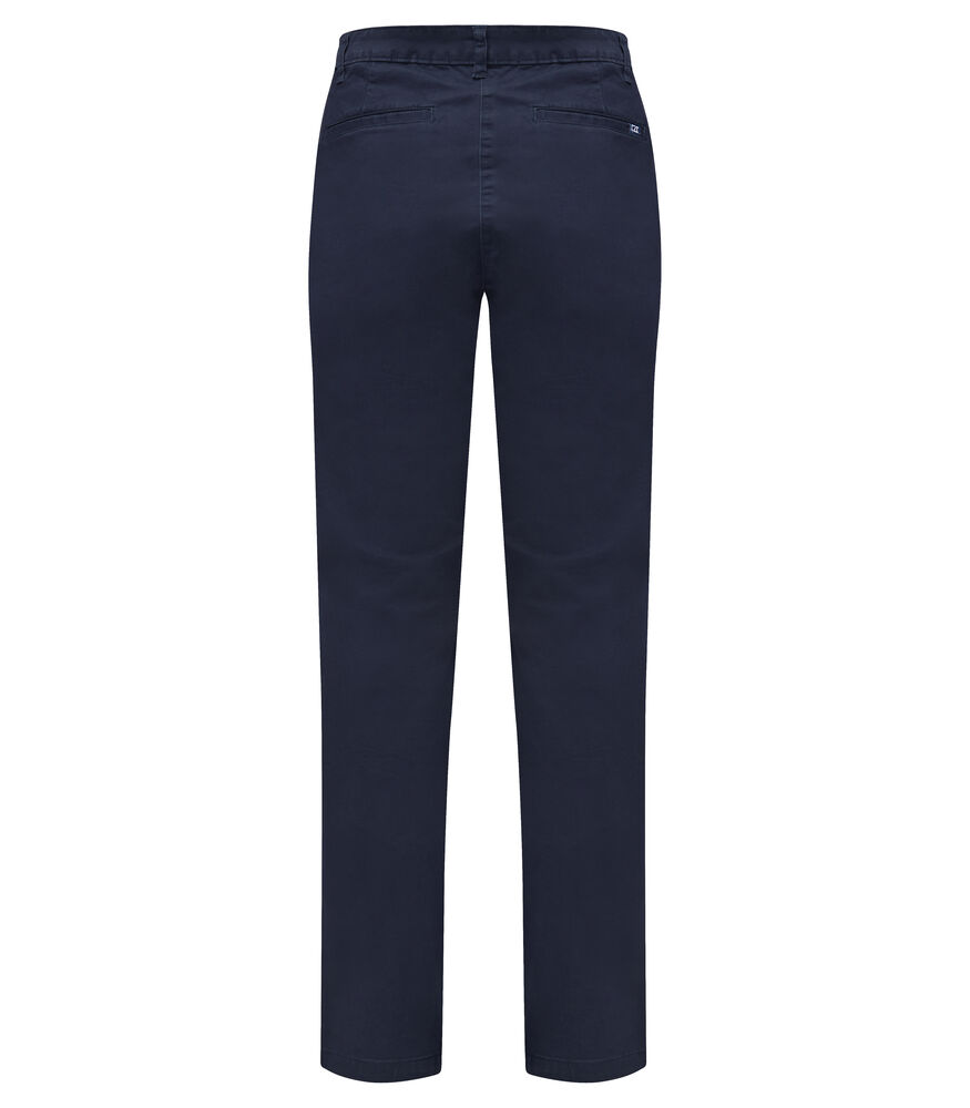 Edgemont chinos er laget av en blanding av høykvalitets bomull, rayon og elastan, som gir et stoff som er både mykt og slitesterkt. Stoffets elastiske og lette tekstur gjør dem behagelige å ha på seg, noe som gjør disse chinos ideelle for enhver anledning. Herrebuksen finnes i tre forskjellige lengder på innerben, for å passe til forskjellige størrelser. Damebuksene finnes i en innerbenslengde og de kan enkelt sys opp og justeres til ønsket lengde.