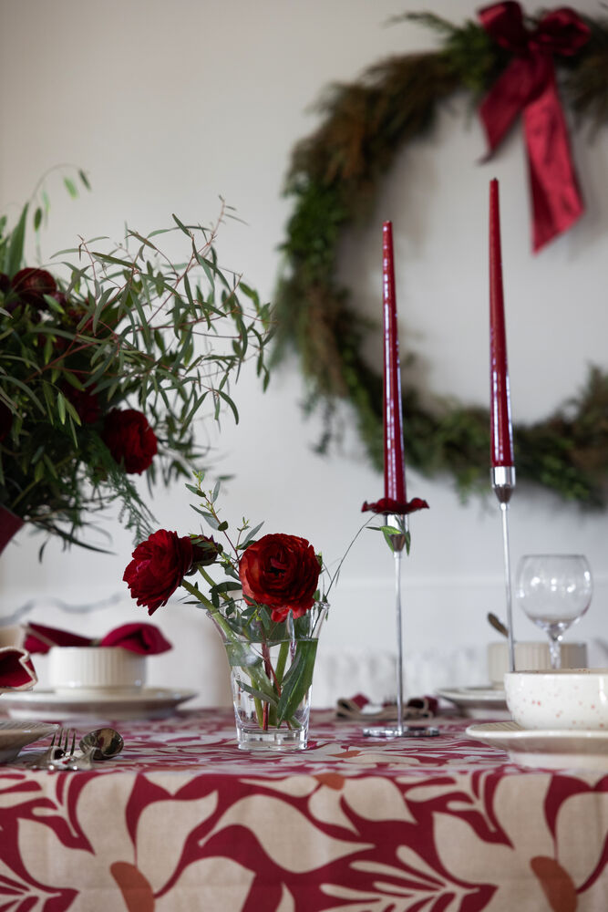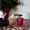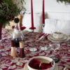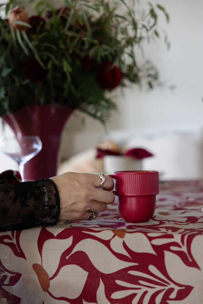 Oppdag Edith-duken – en tidløs klassiker som tilfører både karakter og julestemning til bordet ditt. Det vakre blomstermotivet, med store blomster i røde og brune nyanser, gjør duken til et naturlig innslag under høytider og festlige anledninger. Laget av 70 % resirkulert bomull og 30 % resirkulert polyester, gir den en myk og lun følelse som løfter enhver borddekking. Det røde blomstermønsteret finnes også som kjøkkenhåndkle og handlenett. Mål: 150 × 280 cm. Design Studio Sagaform.