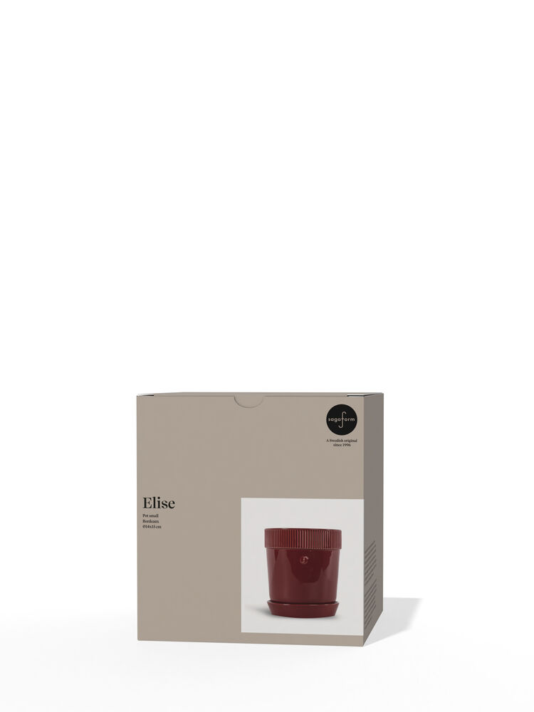 Elise er en potte med skål som gjør alt rett! Den kombinerer design av farge, form og detaljer med praktiske funksjoner som dreneringshull og en litt høyere kant på skålen. Elise har en mykt avrundet form med enkle, rette snitt og er laget av klassisk steingods. Potten er dekorert med et emblem og Sagaforms karakteristiske stripe – og har deretter blitt glasert i vakre og naturlige farger. Potten Elise vil bli et varmt innslag i alle hjem. Tilgjengelig i ulike størrelser. Leveres i en fin Sagaformboks. Design Studio Sagaform