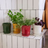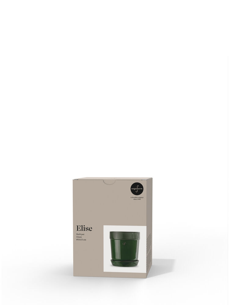 Elise-krukken for urter har et praktisk dreneringshull og et fat. En essensiell potte som fungerer med både urter og mindre planter. Bland den med de større størrelsene for en fin effekt, eller plant flere forskjellige urter og plasser dem i vinduet. Krukken er dekorert med et emblem og Sagaforms karakteristiske stripe. Den er laget av steingods og er glasert i flere vakre, naturinspirerte farger . Tilgjengelig i flere størrelser. Den perfekte gaven pakket i en fin gaveeske. Rommer 60 cl.
