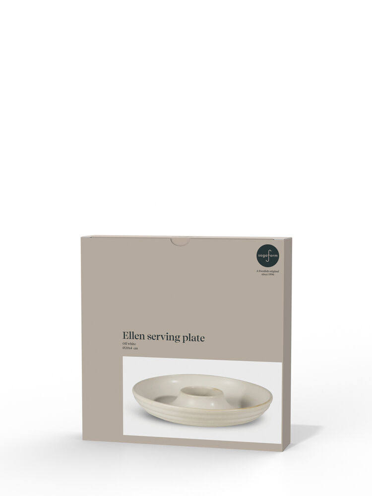 Et smartere og mer dekorativt serveringsfat må du lete lenge etter. Fatet Ellen er formet som en smultring og er perfekt for servering av småretter. Oliven, nøtter, lørdagsgodt eller snacksen – alt blir smakfullt og vakkert med Ellen serveringsfat. Serveringsfatet er stablebart, laget av steintøy og kommer i en vakker, matt off-white farge. Retten er også enkel å matche med alt annet servise som du allerede har i kjøkkenskapene.