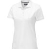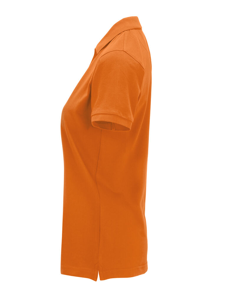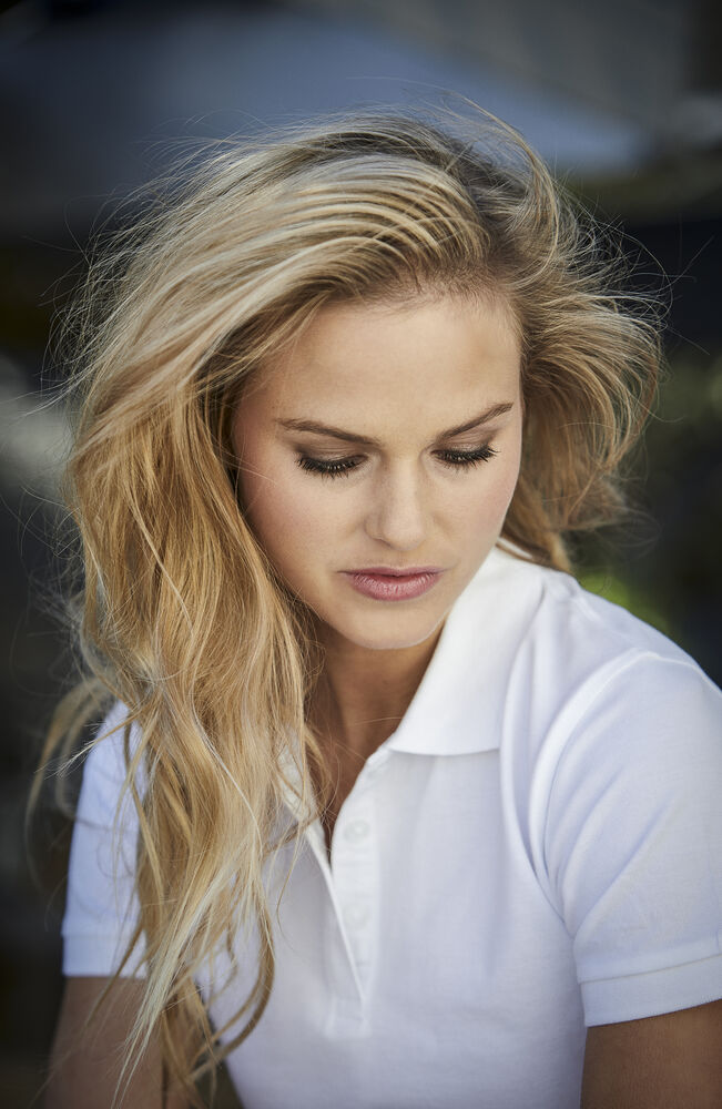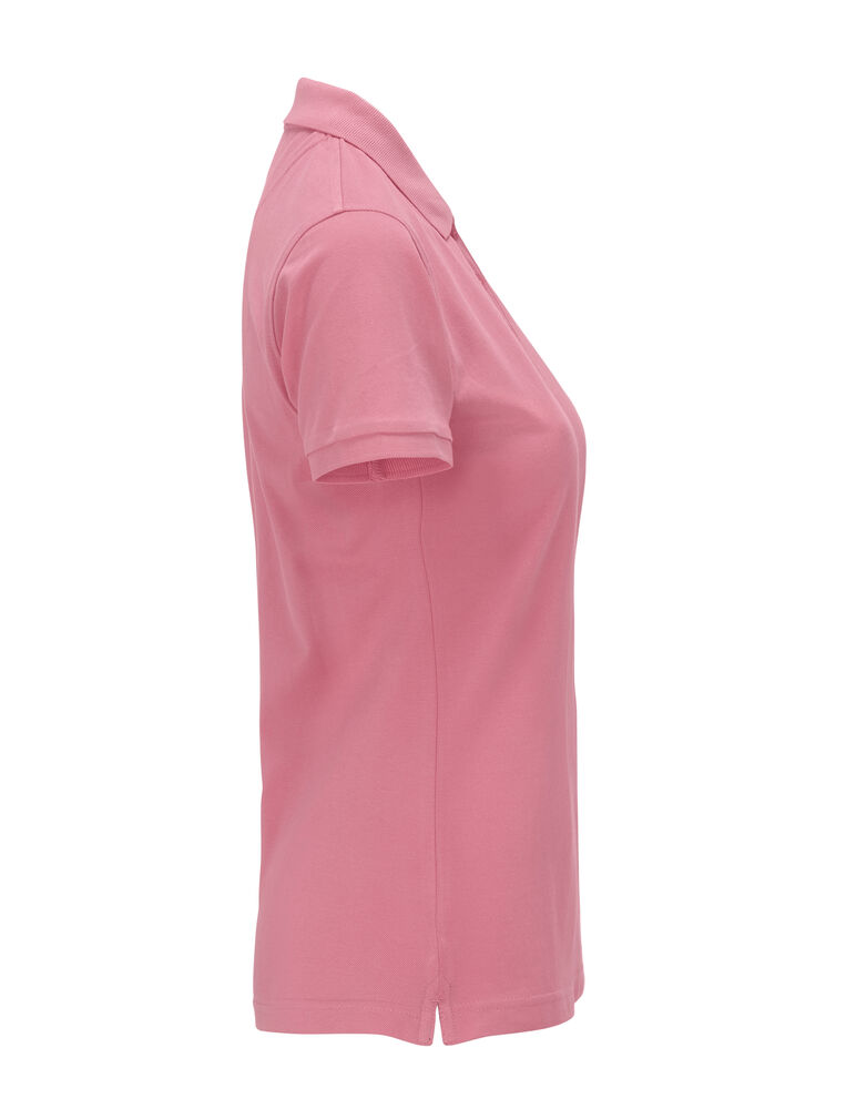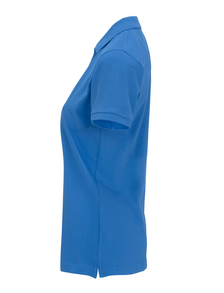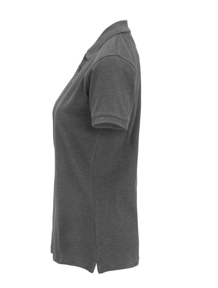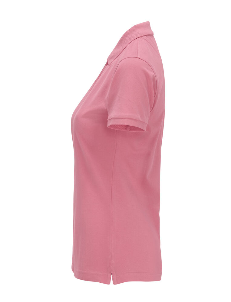 Pique med nakkebånd og splitt i siden, tre knapper på damemodellen og to på herremodellen. Brodert logo i nakken.
