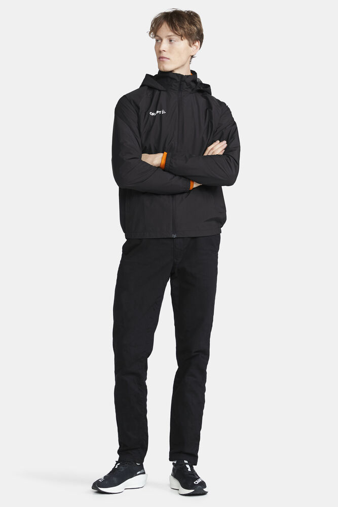 Evolve Rain Jacket er en tynn og fleksibel regnjakke for trening under våte forhold. Jakken har teipede sømmer for optimal beskyttelse mot fukt og et mykt nettingfôr som gir effektiv fukttransport. Jakken har også to sidelommer og en hette som kan brettes inn i kragen.