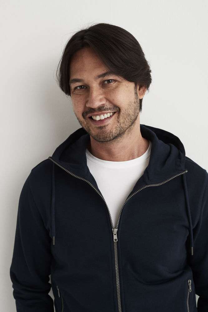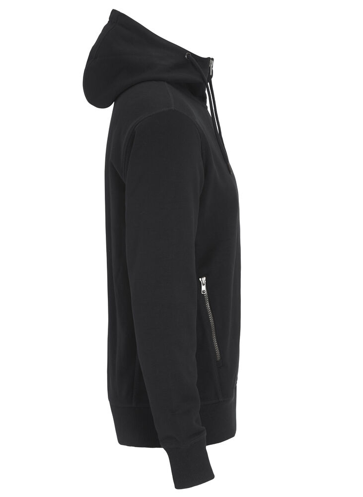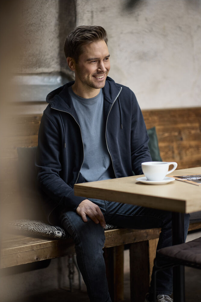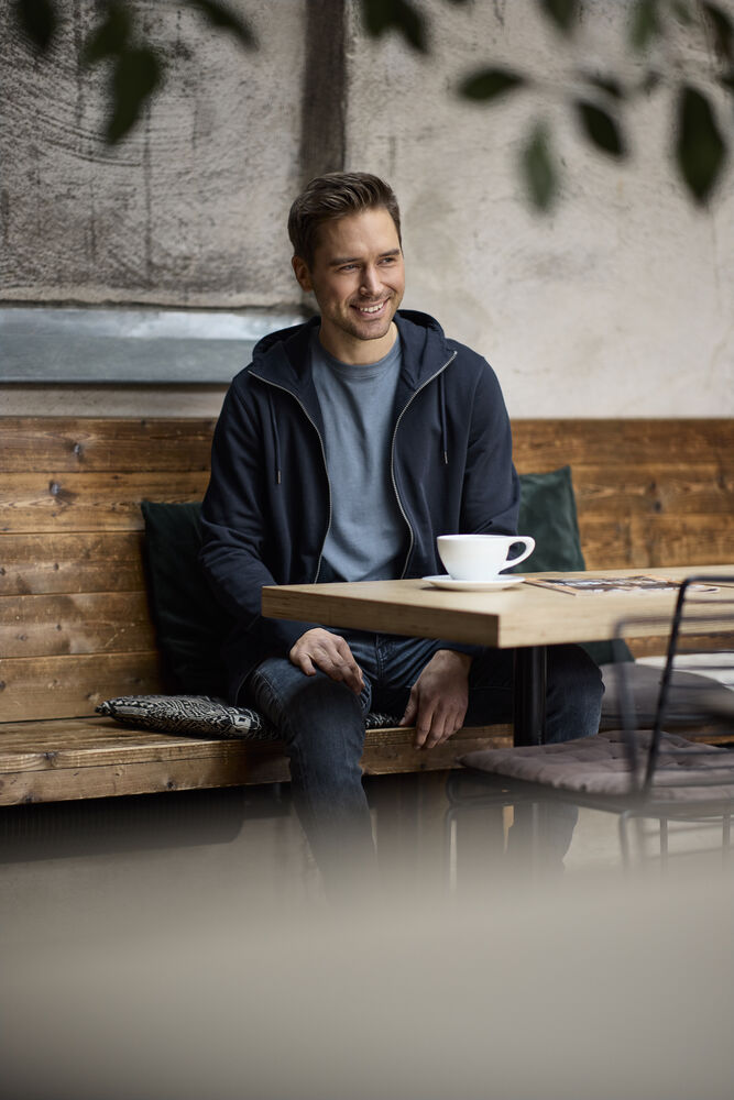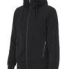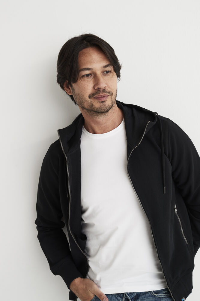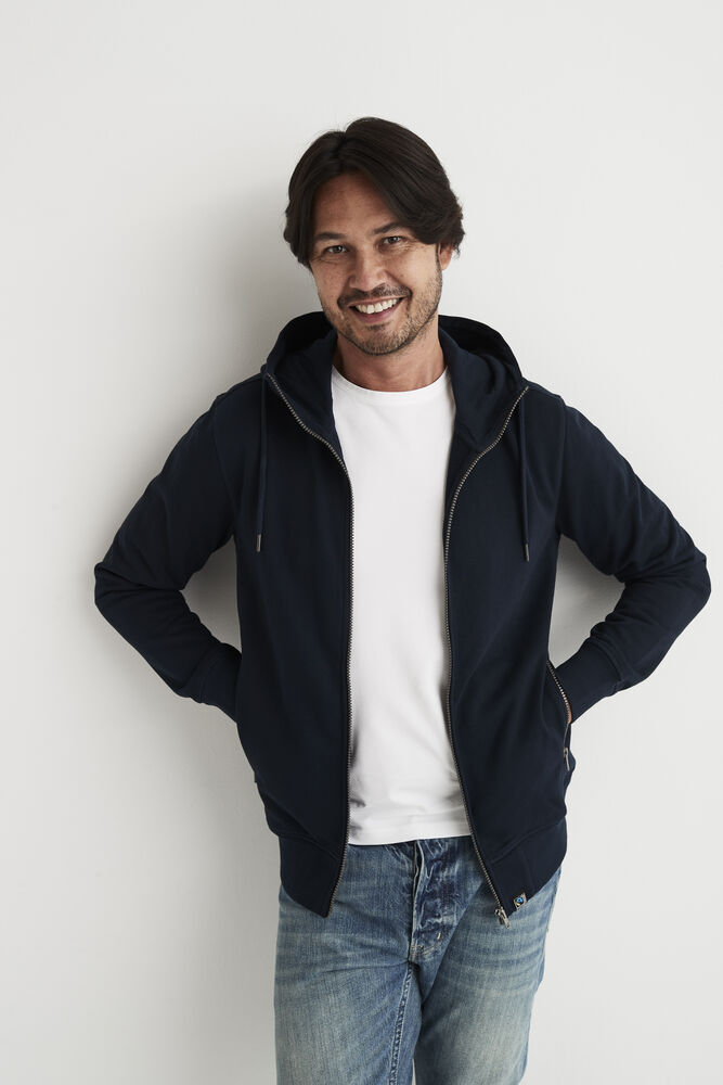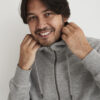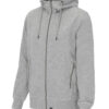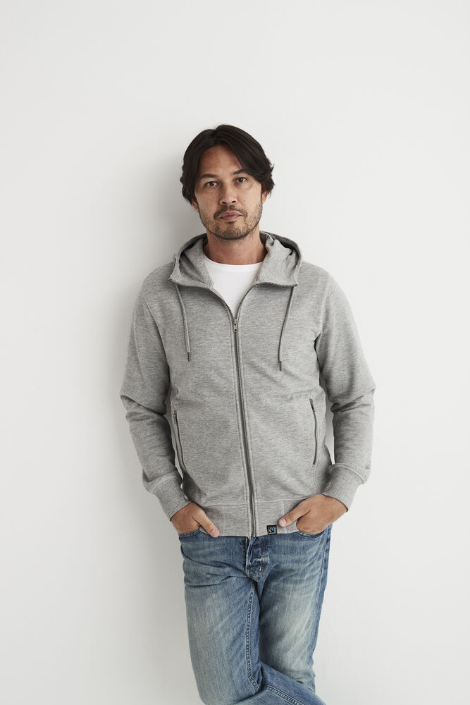 Hettegenser laget av French Terry (med små løkker på innsiden). 2×2 ribb i nederkant og i mansjettene. Formsydd hette med doble sømmer og snøring. Synlige YYK-glidelåser med detaljer i antikk sølvmetallfarge, hel glidelås som går opp i kragen og glidelåser i frontlommene. Dekorsømmer i overlock og snøring i hetten – alt ton i ton.
