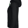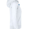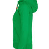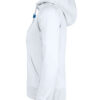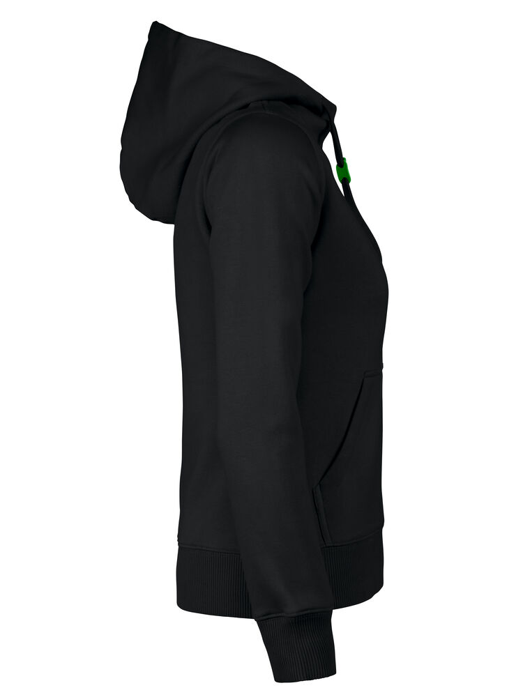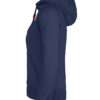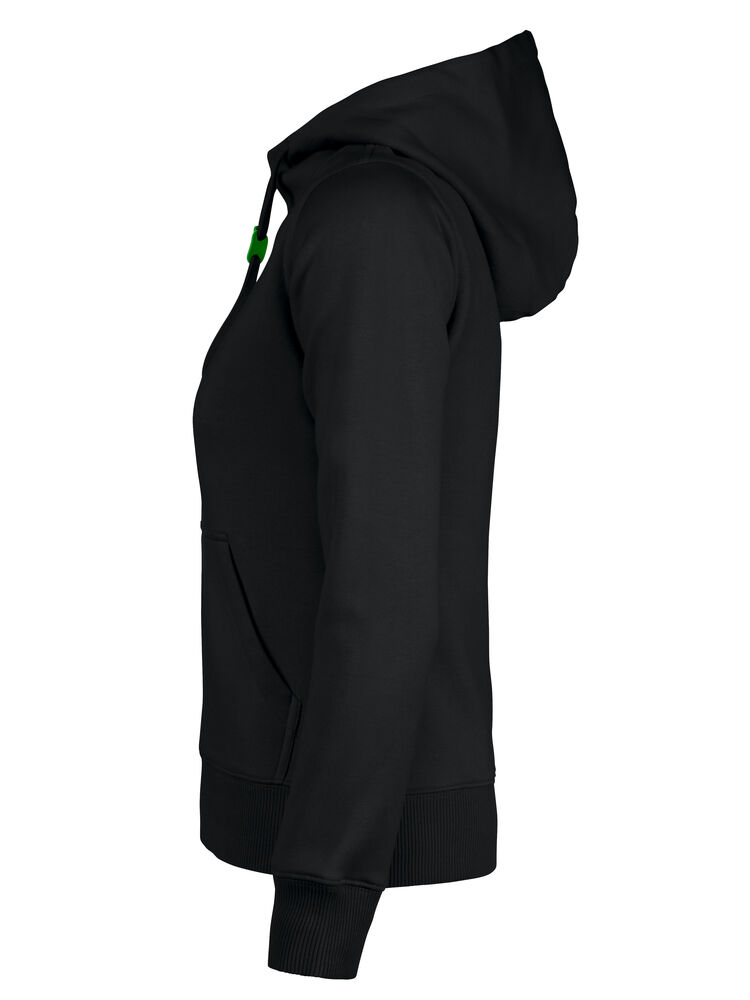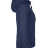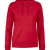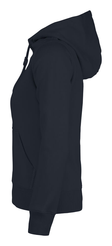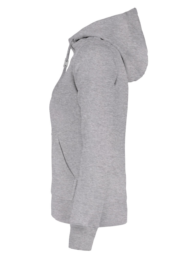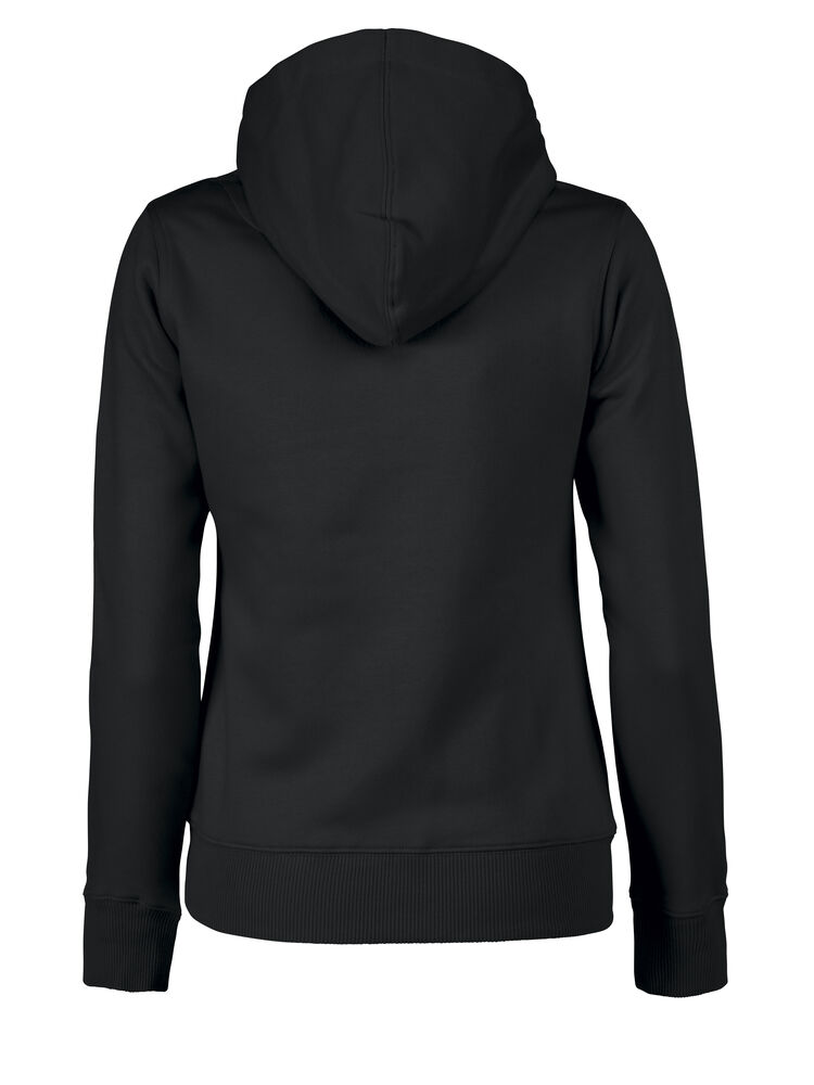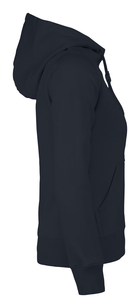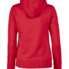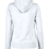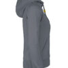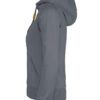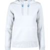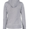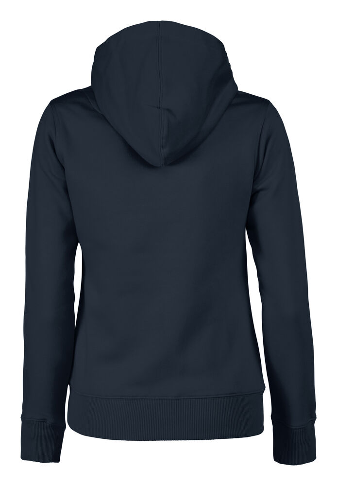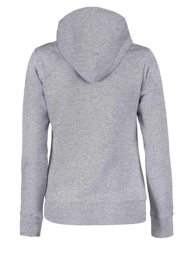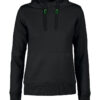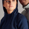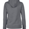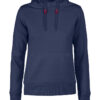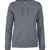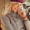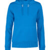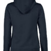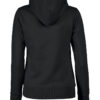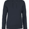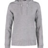 Hettegenser til dame med halvmåne i nakken og 2×2 ribb med elastan i ermavslutning og i nederkant av genseren.