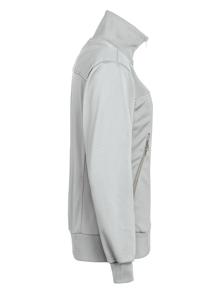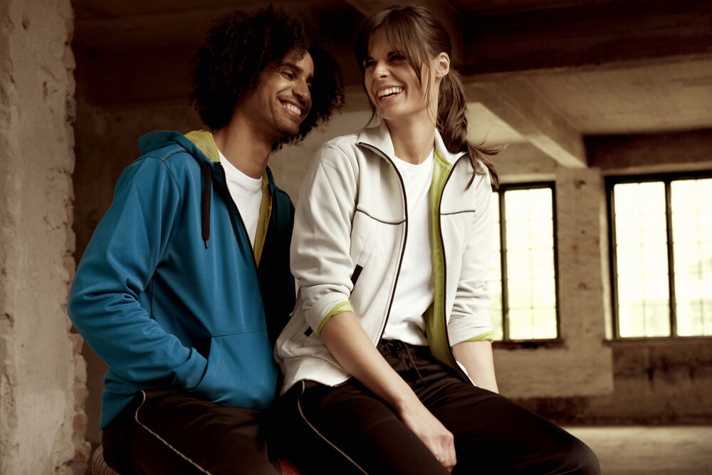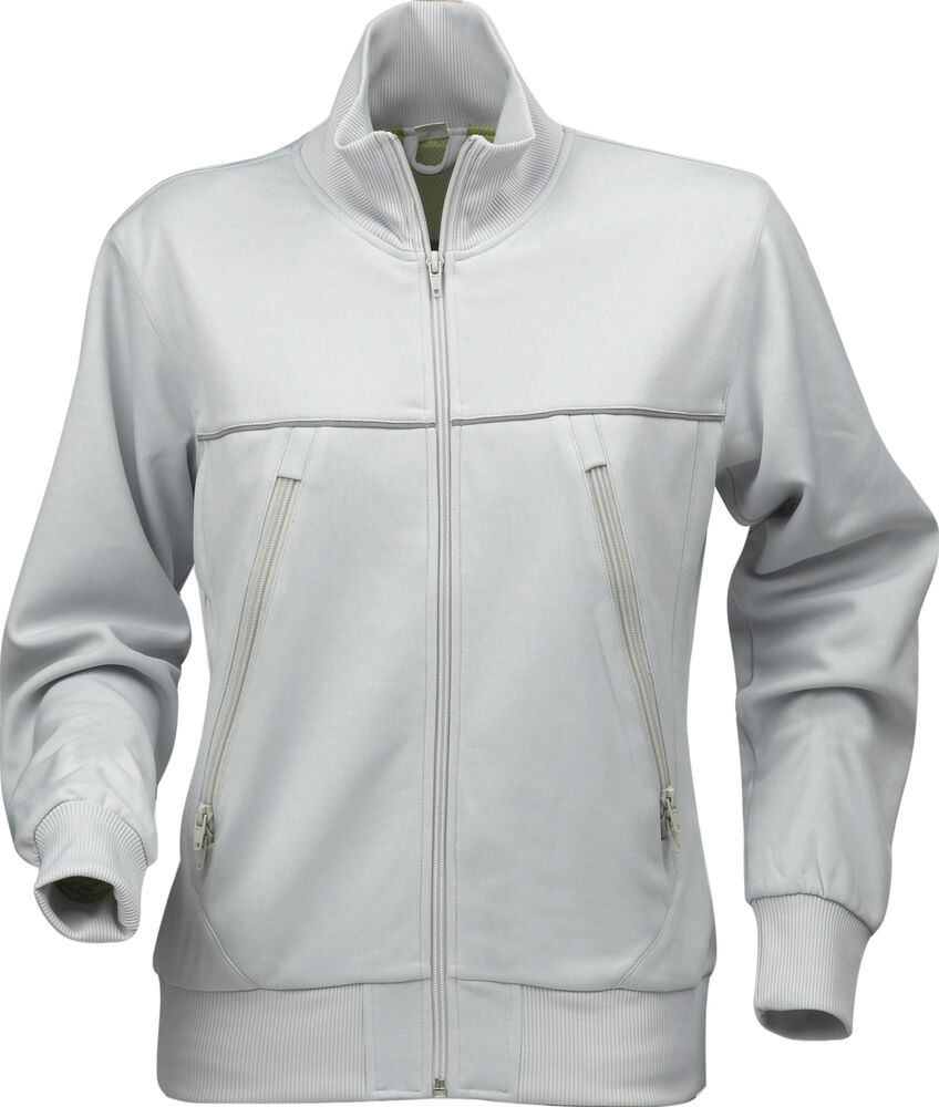 Sporty jakke i damemodell med to lommer med glidelås. Kontrastfarget meshfôr. Ribb i nakke, linning og erm. Reflekterende piping.