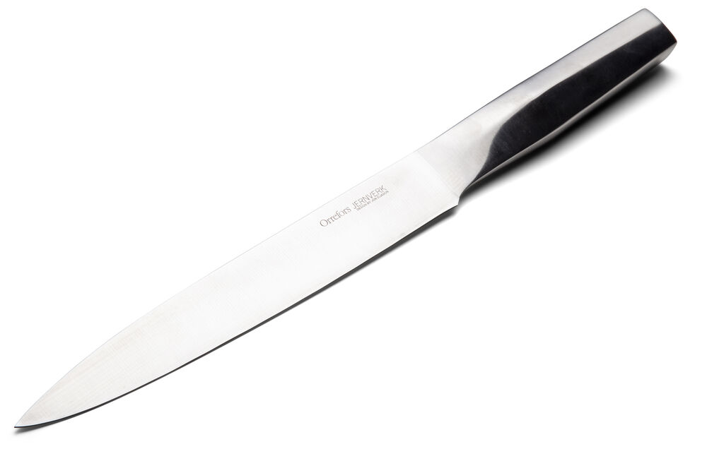 Kniv med et langt, smalt og lett bøyelig knivblad for å enkelt kunne følge f.eks skinnet på fisken. Passer utmerket til andre typer kjøtt også. Laget av svensk stål. Design: Jon Eliason. Størrelse blad: 20cm.