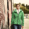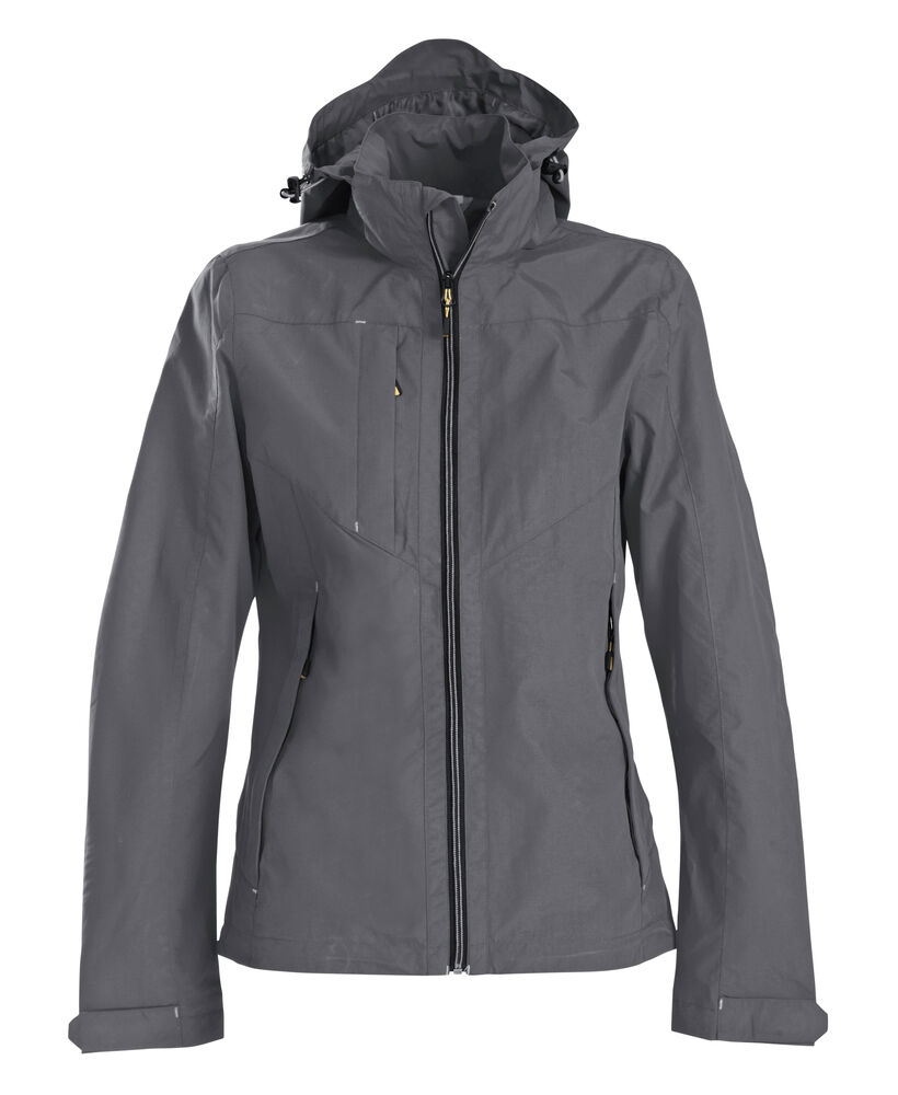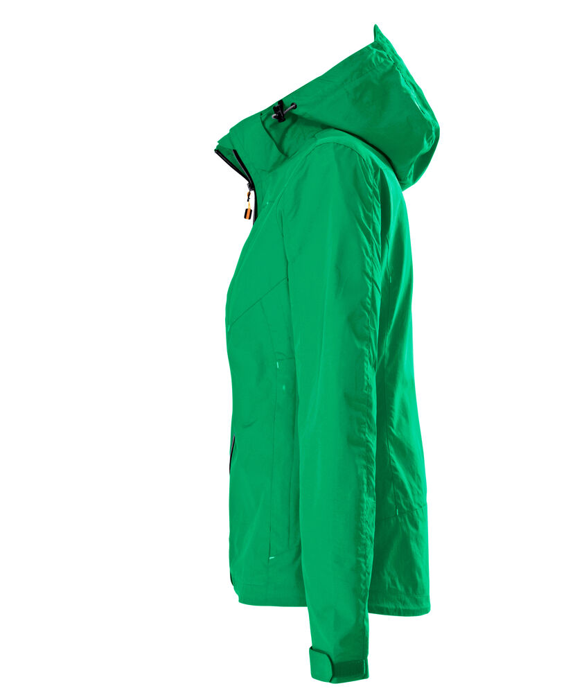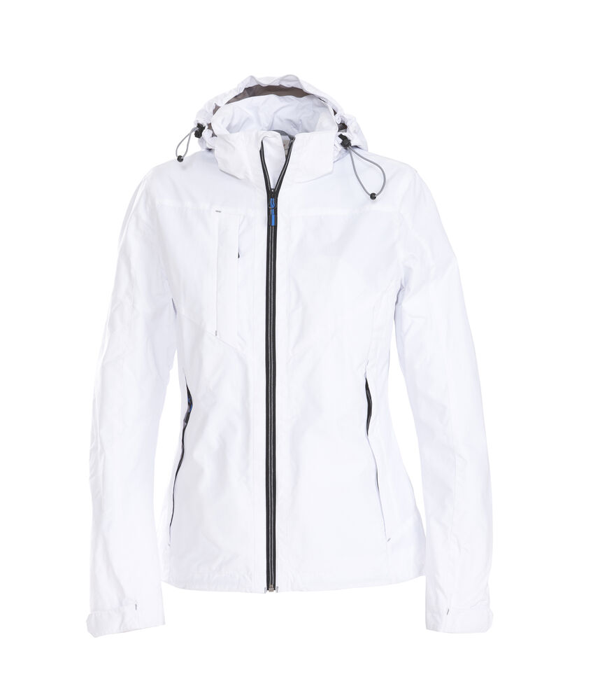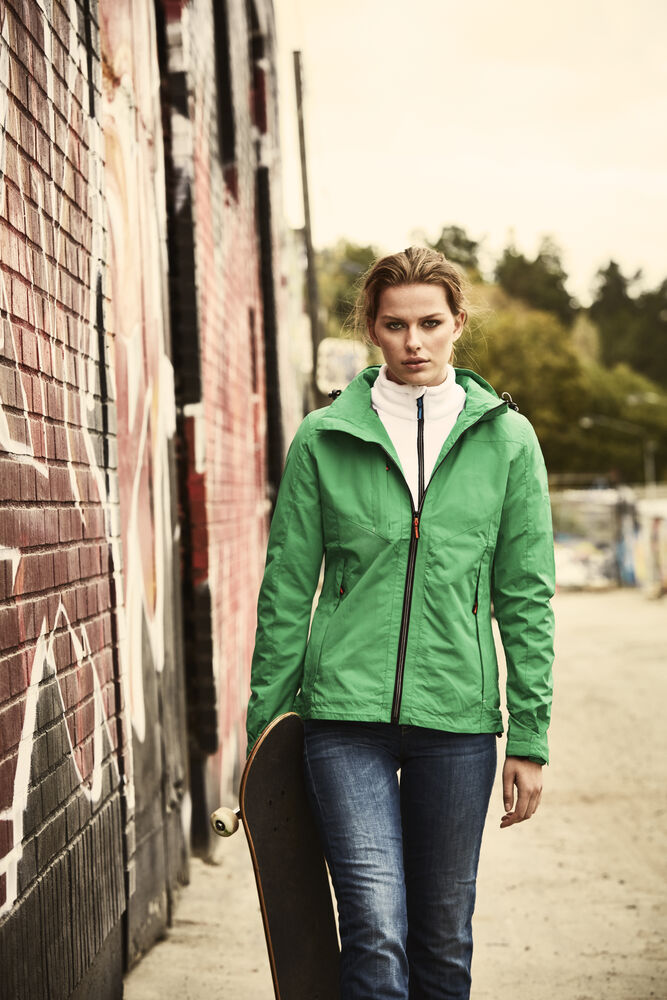 Sporty skalljakke til dame med polyesterfôr. Mange praktiske lommer. Tofarget glidelås i front. Moderne passform og dekorative sømmer. Mulighet for å kjøpe separate zip-pullere i ulike farger til glidelåsen for å matche eventuelle logoer.
