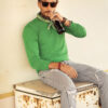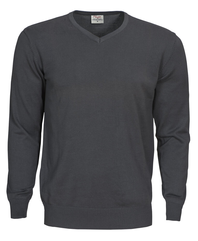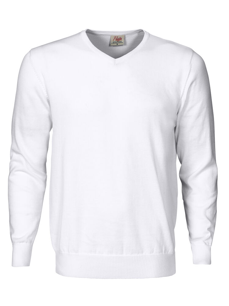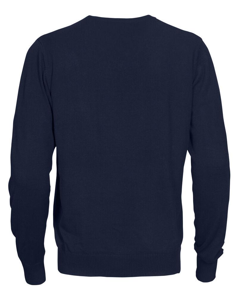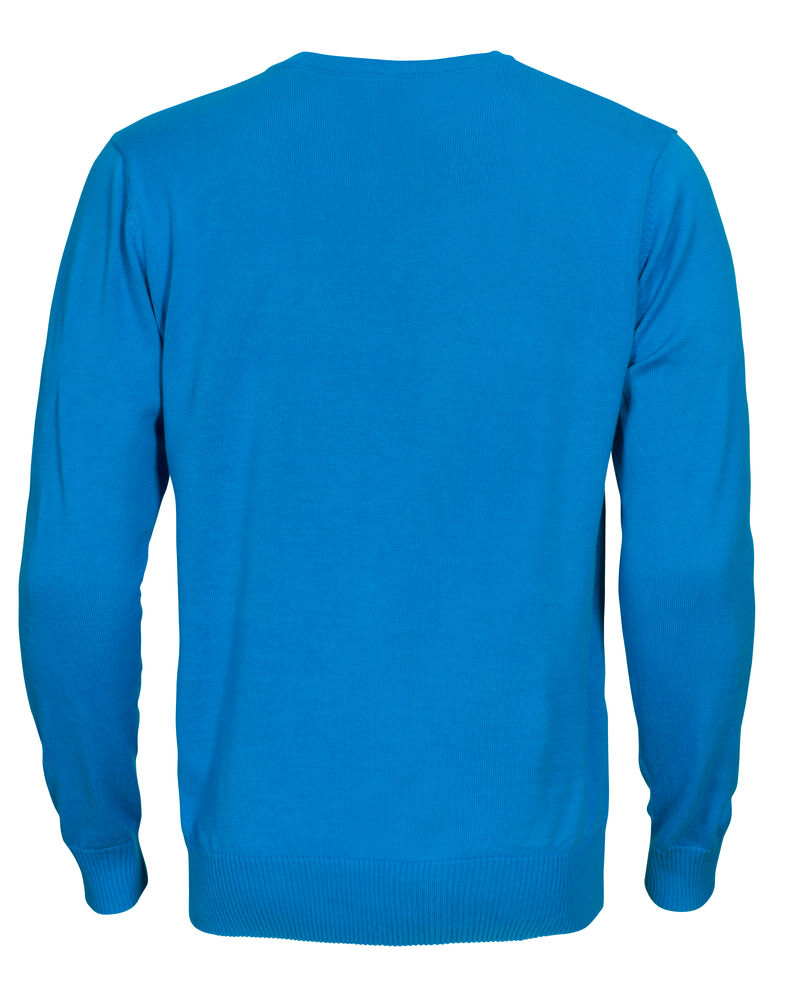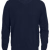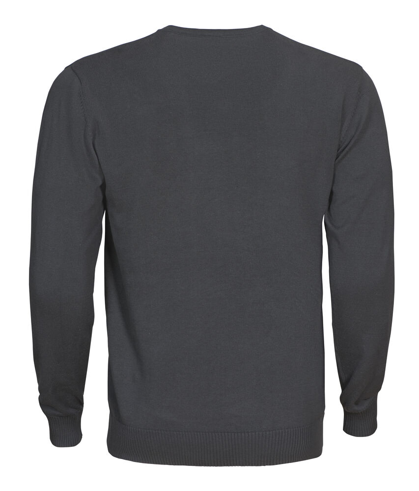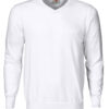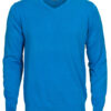 Strikket genser med V-hals. 1×1 ribb i nederkant og i ermavslutning.
