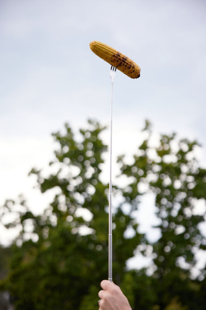 Design og funksjon i ett. Sagaform er kjent for alltid å tenke på det ekstra som mange andre glemmer. Fredde pølsegaffel er den perfekte dingsen for friluftsliv. En utbrettbar og grillsikker gaffel perfekt når pølser og grønnsaker skal tilberedes over åpen ild. Laget av rustfritt stål med gummitrehåndtak. Tar minimalt med plass når den ikke er i bruk.