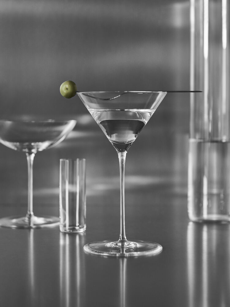 Kuler, sylindre og kjegler danner grunnlaget for den passende navngitte Geometry-serien, et ekte mesterverk av skandinavisk design. Elegante geometriske former og et selvsikkert uttrykk kombineres for å levere et tidløst, umiskjennelig Orrefors-design. Koppen, bena og foten utgjør de tre komponentene i en stilisert geometri. Glasset er munnblåst. Dette glasset rommer 7cl og egner seg for shots. Designet av Claesson Koivisto Rune.