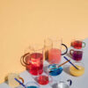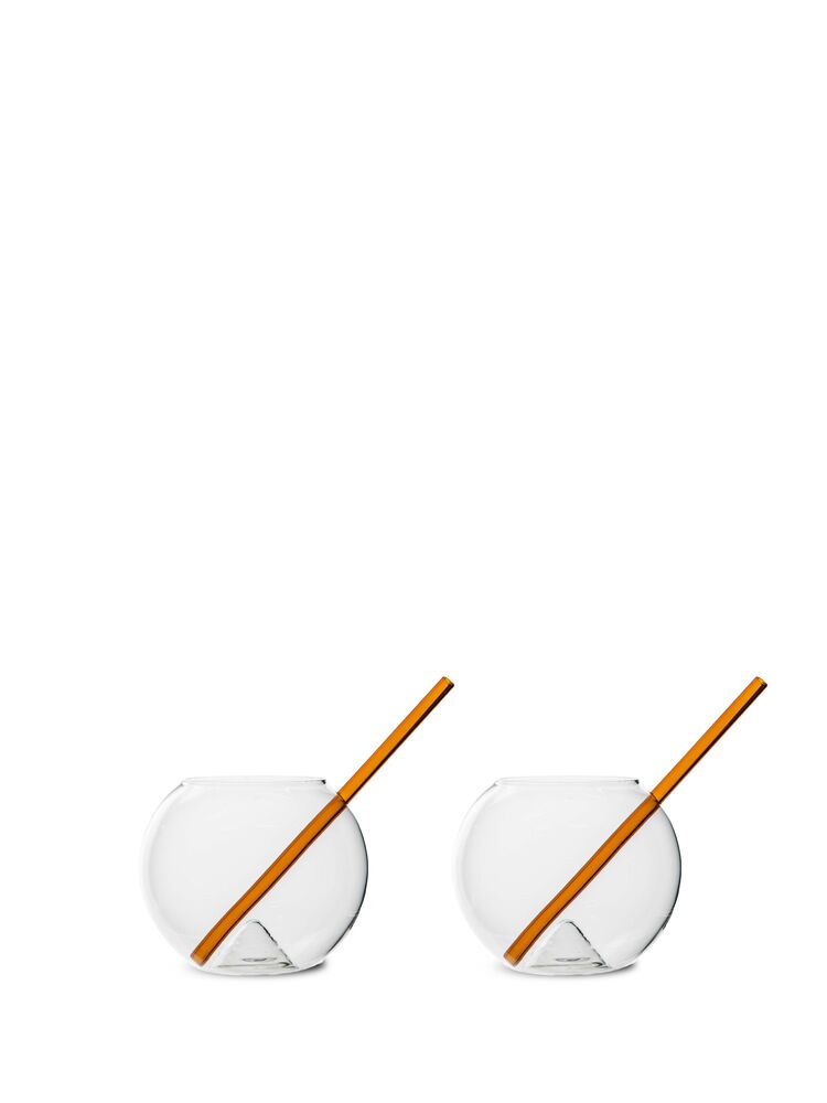 Glasset Magaluf er rund som solen og passer perfekt i hånden. Det tilhørende sugerøret er laget av farget glass.