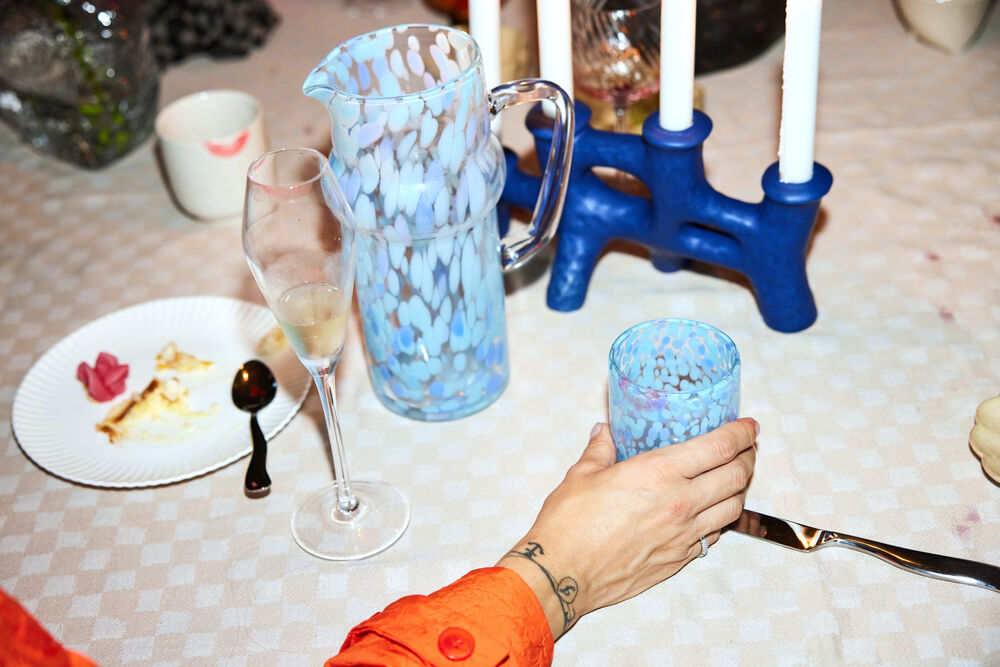 Som en deilig karamell i et tykt glass. Alle unike på hver sin måte, håndlaget og håndblåst i et lekent og rotete mønster i den perfekte blåfargen. Vi serverer drikke, juice, melk eller kaffe. Glassene kan brukes som lyslykt, eller piffe opp badet som et fantastisk tannbørsteglass. Håndlaget, farge- og teksturforskjeller kan forekomme. Tåler vask i oppvaskmaskin. Design Byon Studio. Leveres i 2-pakninger i Byon-boks.