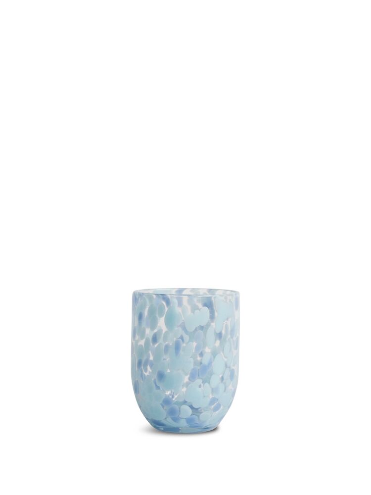 Som en deilig karamell i tykt glass. Håndlaget og håndblåst i et lekent og rotete mønster i den perfekte blåfargen. Messy er perfekt til drinker, juice, melk eller kaffe. Det kan også brukes som lyslykt eller som et fantastisk tannbørsteglass som livner opp badet. Glasset er håndblåst – farge- og teksturforskjeller kan forekomme.