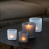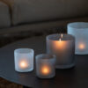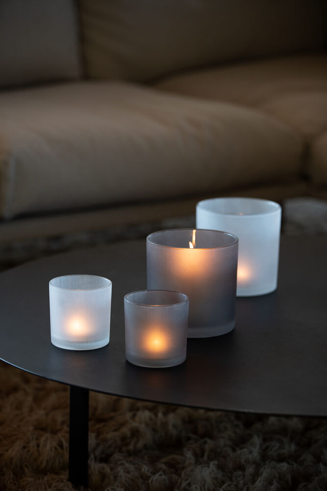 Frostet glasslykt som skaper en koselig atmosfære og en varm glød. Lyktene er håndlaget og hver glasslykt får derfor sin egen vakre glød. Kombiner dem i to størrelser og la en myk glød lyse opp hjemmet eller bordet ditt.