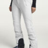 Grace Softshell Ski Pant er en moteriktig softshellbukse som gir en elegant og stilig silhuett. Skibuksen har elastisk og justerbar midje, og har ekstra bevegelsesfrihet takket være det elastiske, vannavvisende og vindtette softshell-materialet. To glidelåslommer i front, glidelås i benavslutningene, vatterte knær, snølås i benavslutningene og vannavvisende glidelåser.