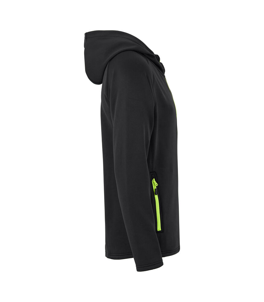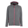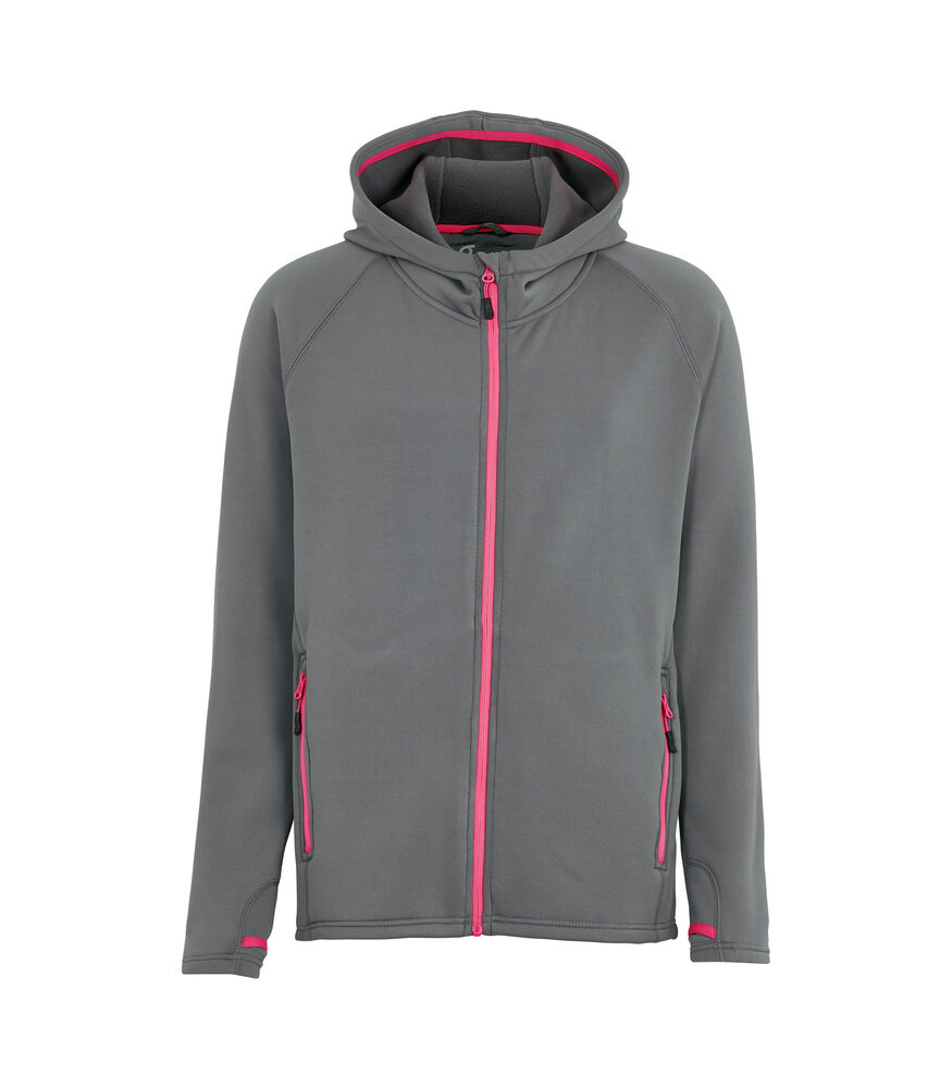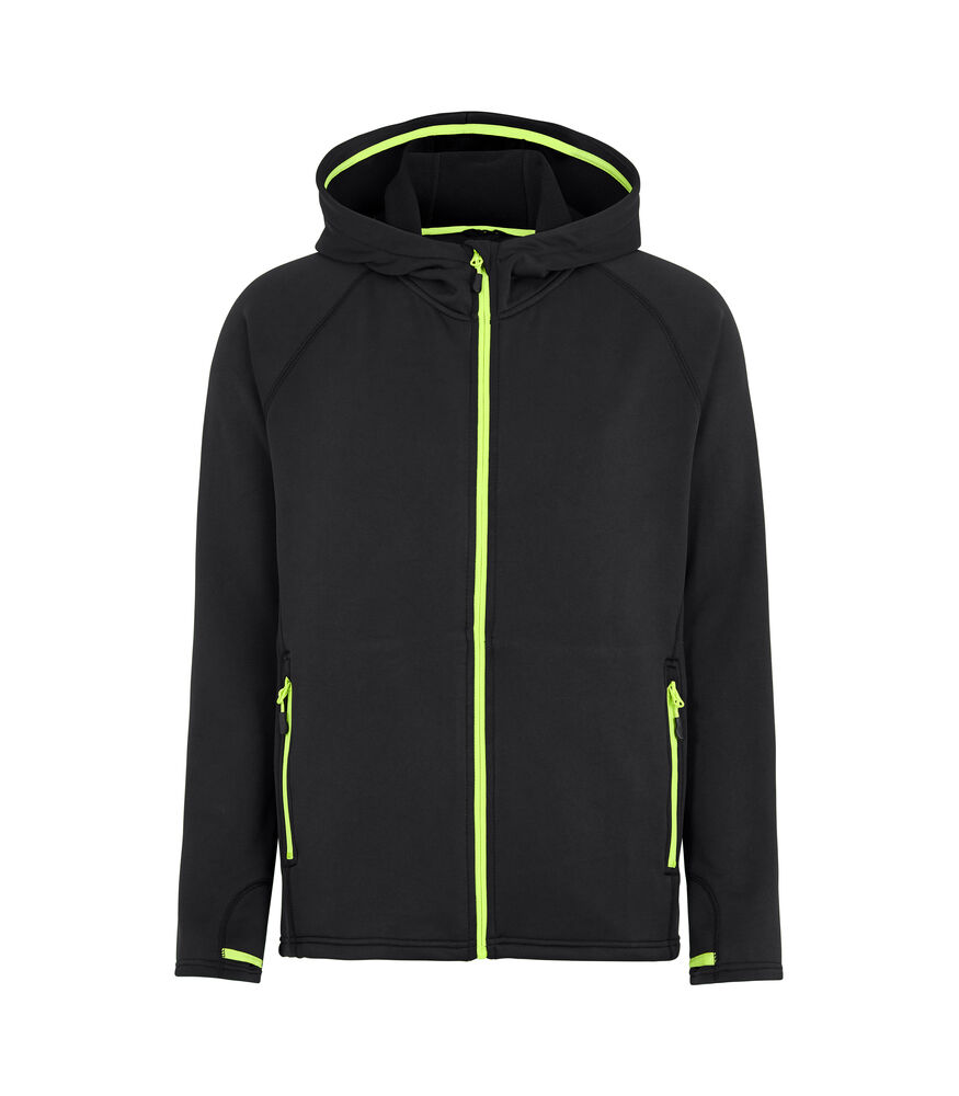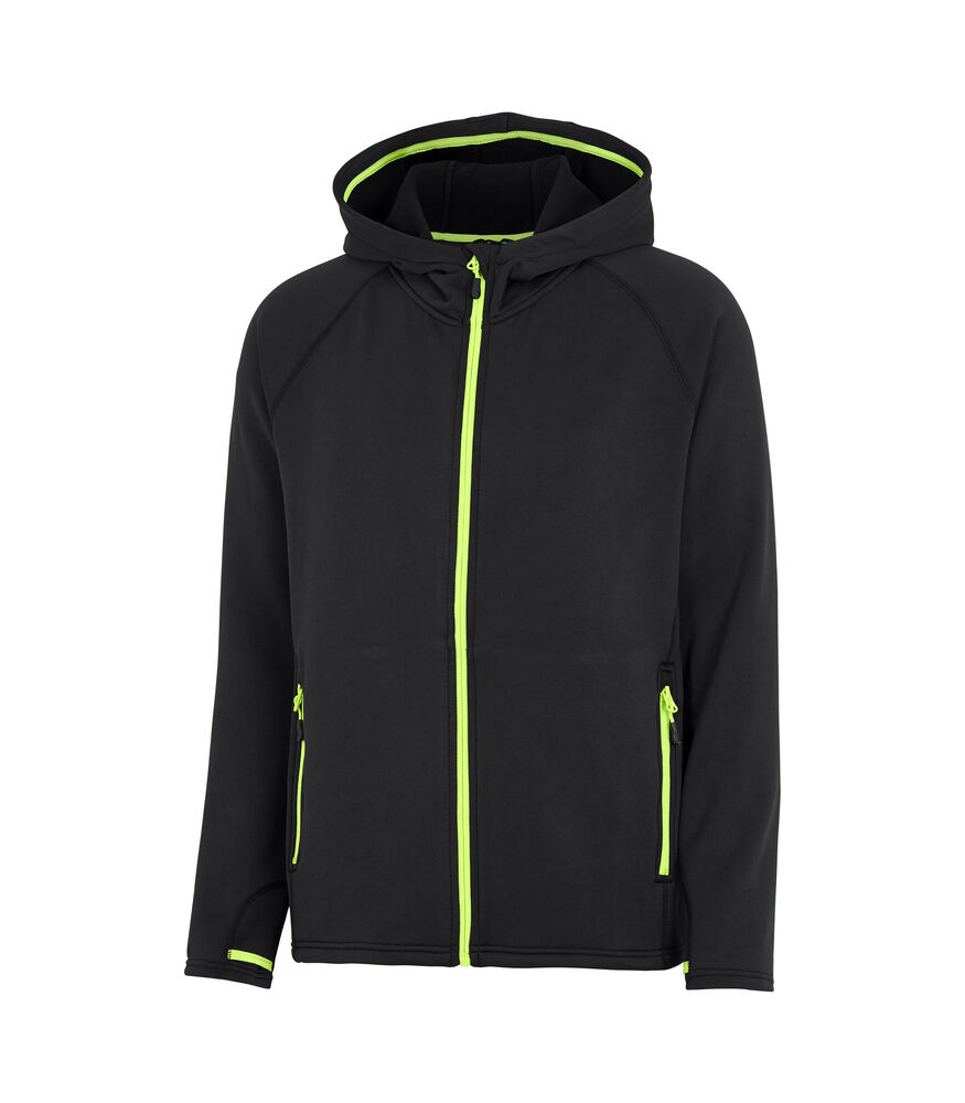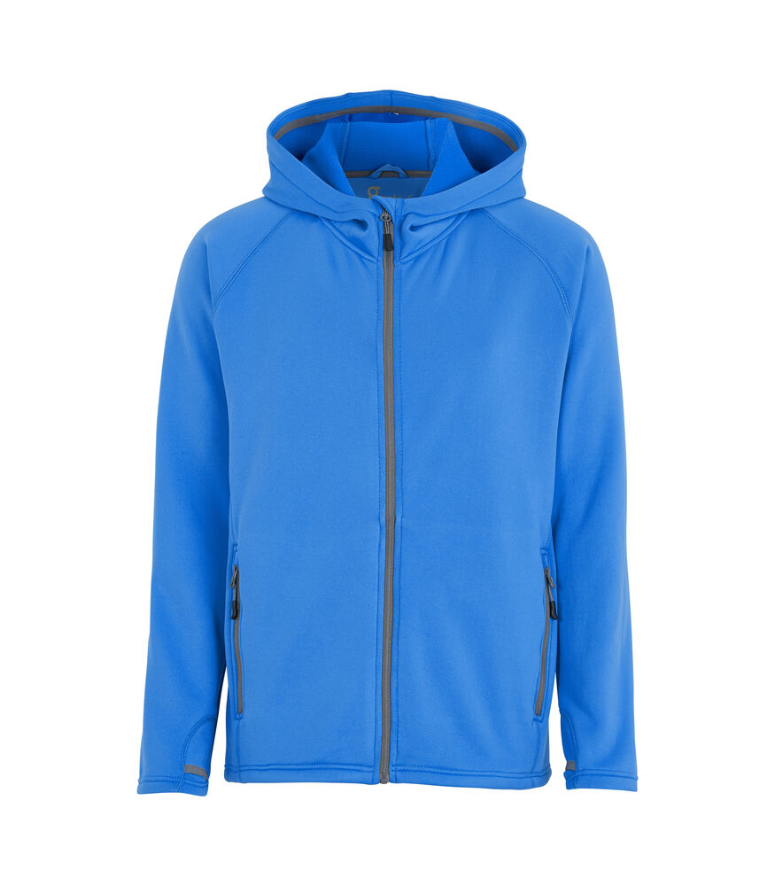 Hettejakke i god kvalitet som både varmer og transporterer fukt. Konstrastfarget glidelås i front og på lommene. Børstet innside.