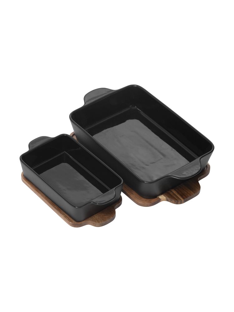 Robuste former med rå, matt finish i svart. Laget av slitesterkt steingods med delvis resirkulert innhold. Perfekt til ovnsbakte rotgrønnsaker, gratenger eller en rustikk pai. En verdsatt gave i fin emballasje.