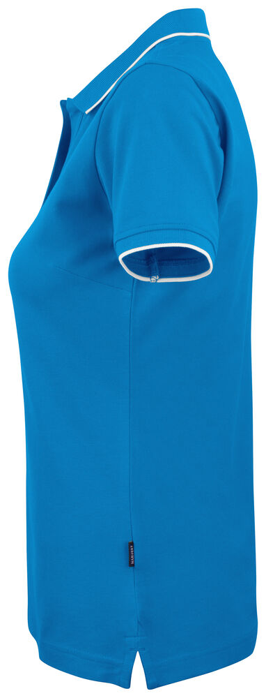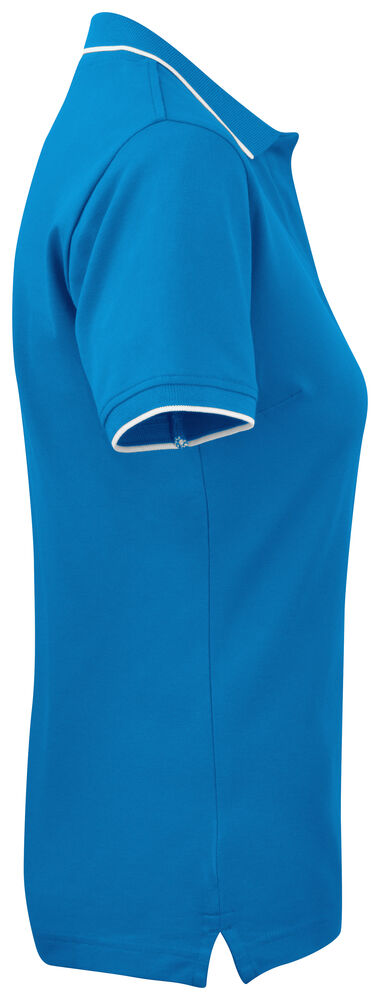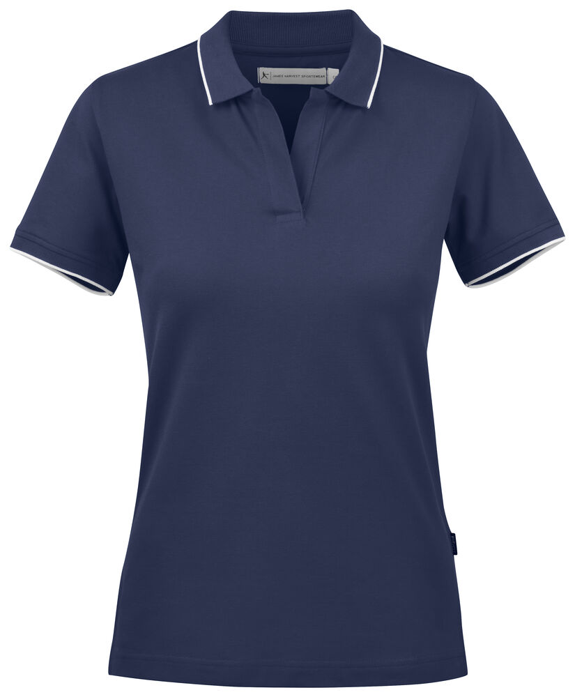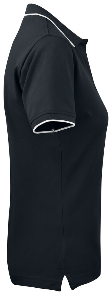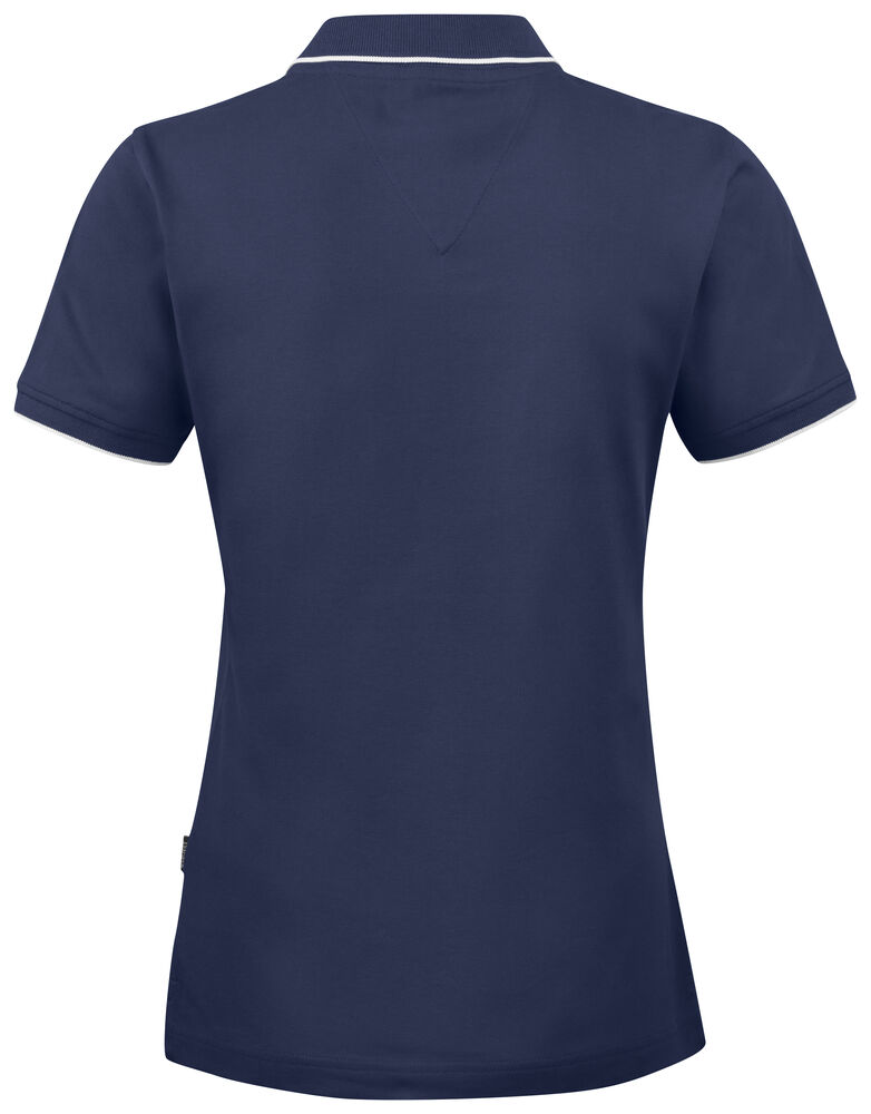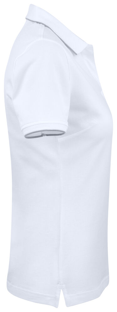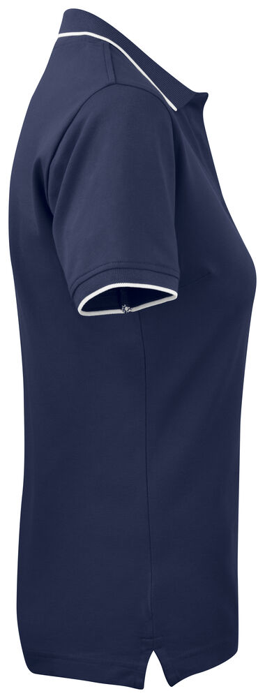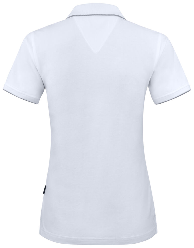 Polo pique med en klassisk hvit stripe i kragen og på ermene. Komfortabelt stretchmateriale. Innsvinget midje og uten knapper i stolpe. Enzymbehandlet.