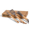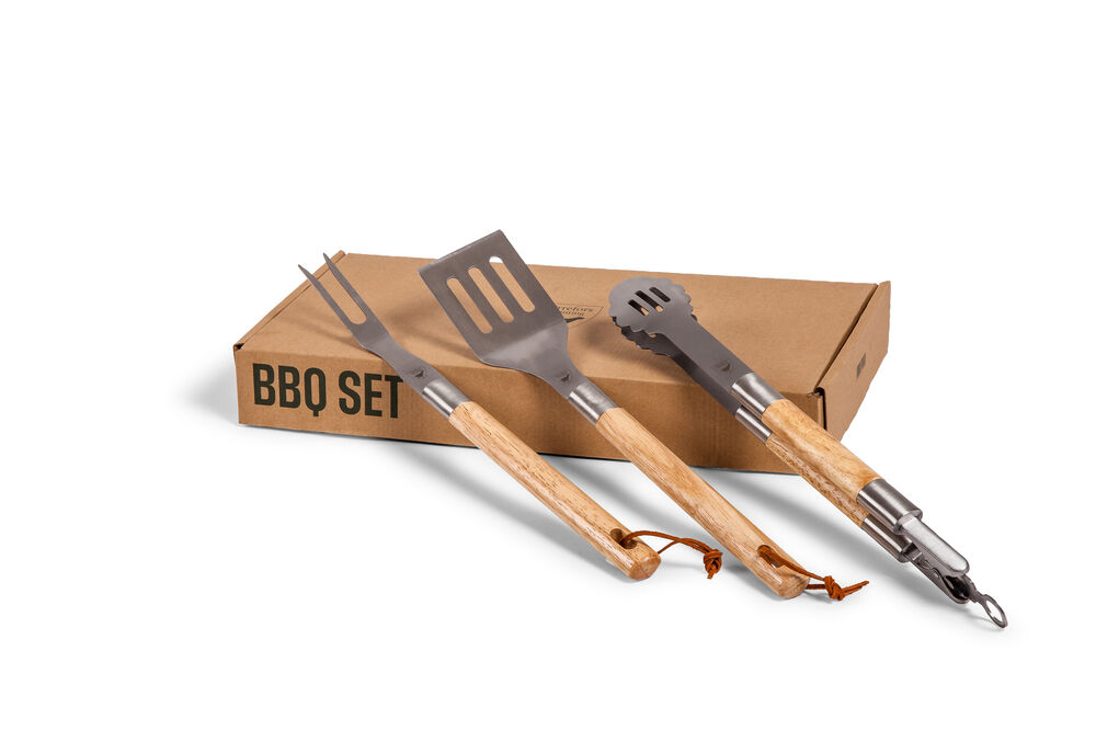 Stilig grillverktøy for den kresne grillmesteren. Håndtak i tre som isolerer fra varmen ellers i tykt rustfritt stål. Leveres i en fin gaveeske.