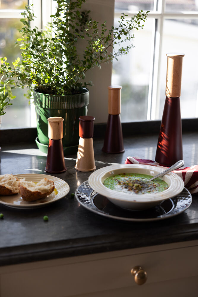 Gurken Medium er en tidløs kvern for ethvert hjem, designet i samarbeid med Daniel Enoksson. Gurken er en salt- og pepperkvern inspirert av naturens mektige fjellandskap. Med sin høyde på 20,5 cm passer den perfekt i alle kjøkken og blir en stilig hverdagsdetalj. Den koniske formen gir både stabilitet og et tidløst uttrykk, samtidig som kvernen er både funksjonell og dekorativ. Laget av sertifisert bøk og utstyrt med et holdbart keramisk kvernverk i rustfritt stål som gir jevn maling og kan justeres for ulike malegrader. Gurken Medium finnes i to fargevarianter og tilhører Gurken-familien. Design: Daniel Enoksson x Sagaform. Leveres i en elegant, rund gaveeske.