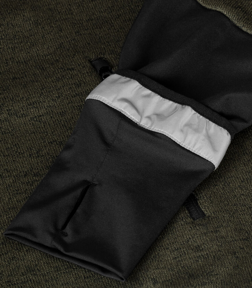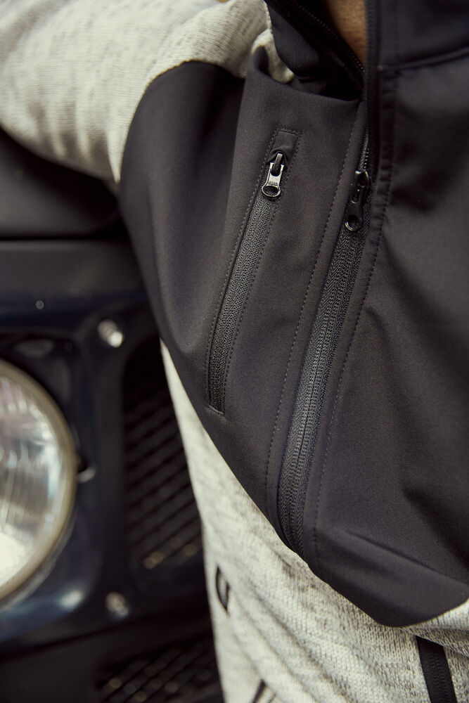 En varm, strikket fleecejakke med felter av softshell. Tre ytterlommer med glidelås og to store innerlommer. Elastisk mansjett med tommelhull på innsiden av ermene. Sammenleggbart refleksbånd. Hank og avtagbar etikett i nakken.