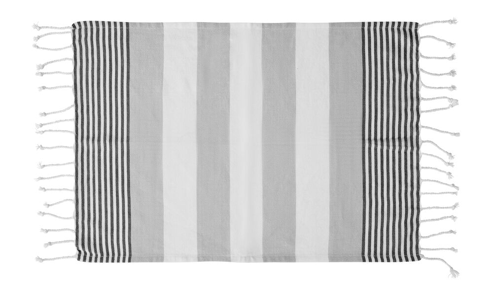 Hamam håndkle i mindre størrelse i vevet økologisk bomull som gjør det perfekt til strandturen da det tørker raskt. Den gode kvaliteten og med et varierende mønster passer det like godt som en innredningsdetalj som for eksempel bordduk eller hvorfor ikke som piknikteppe? Håndklet har frynser på kortsidene.