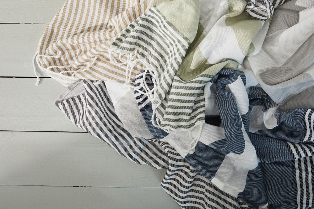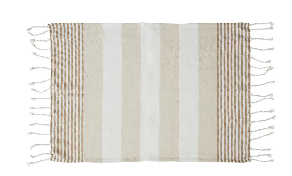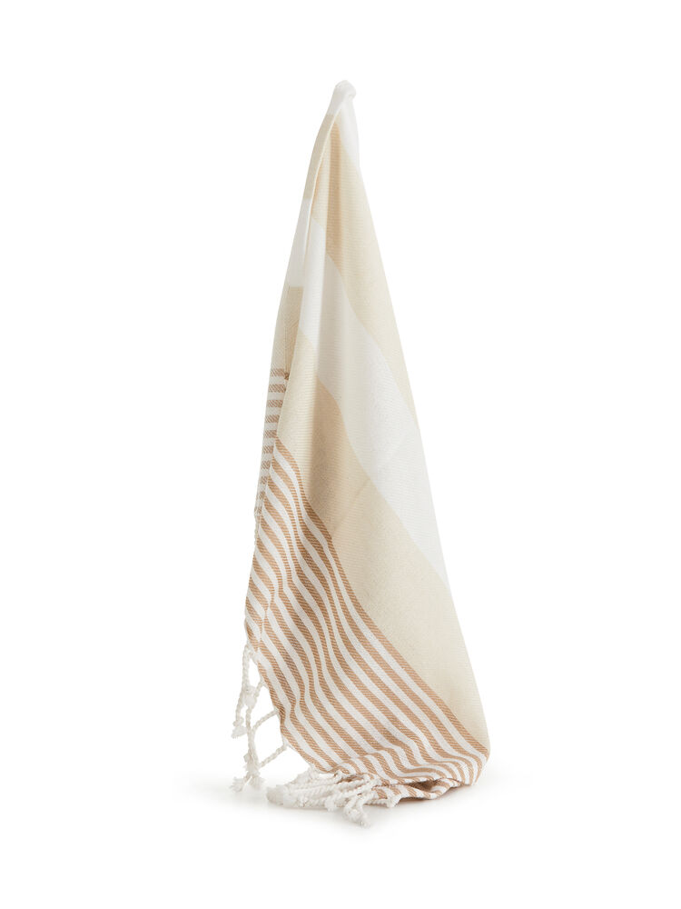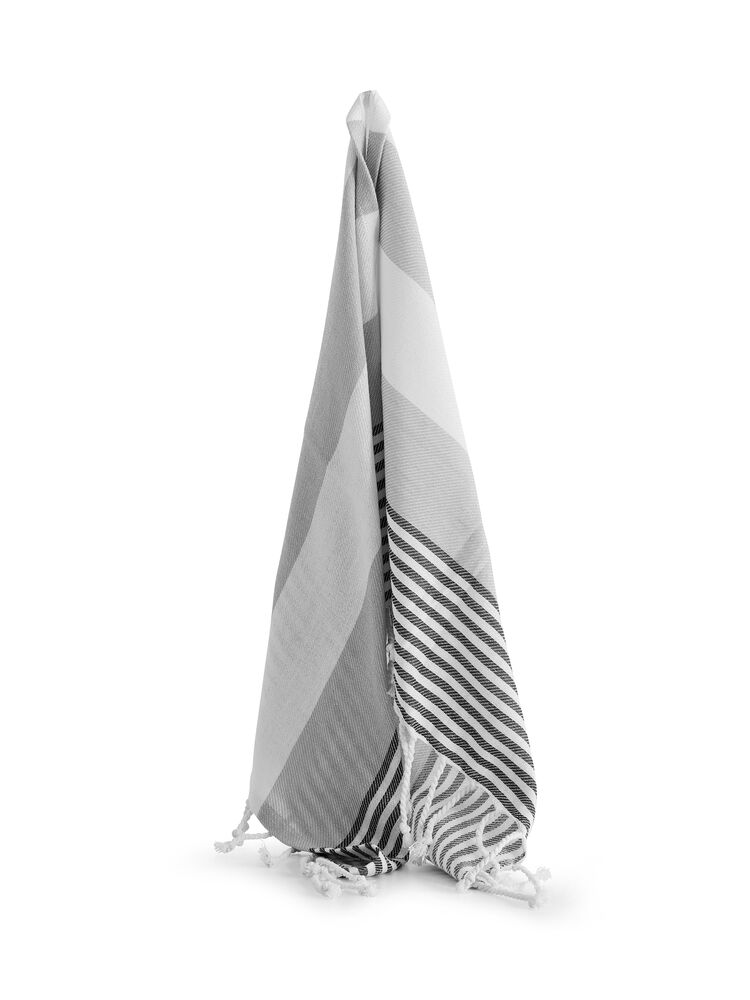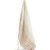 Hamam håndkle i mindre størrelse i vevet økologisk bomull som gjør det perfekt til strandturen da det tørker raskt. Den gode kvaliteten og med et varierende mønster passer det like godt som en innredningsdetalj som for eksempel bordduk eller hvorfor ikke som piknikteppe? Håndklet har frynser på kortsidene.