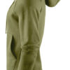 Hettegenser med raglanermer og halvmåne i nakken. Kengurulomme i front. Ton-i-ton snor i hetten. Børstet innside. Ribb i nederkant og i ermeavslutningene.