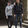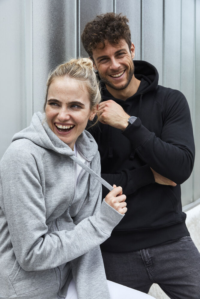 Hettejakke med fôr i hetten. Kengurulomme og en skjult lomme i sidesømmen. Raglanermer og 2×2 elastan ribb i sidepaneler, mansjetter og bunnstykket. Nakkebånd med fiskebensmønster og flate snorer. Løsning for hodetelefoner.