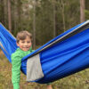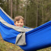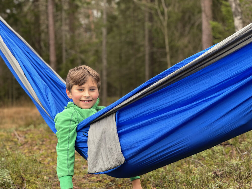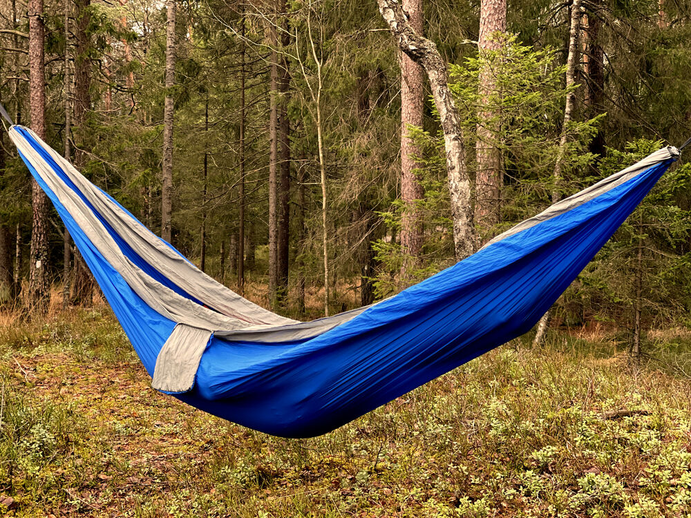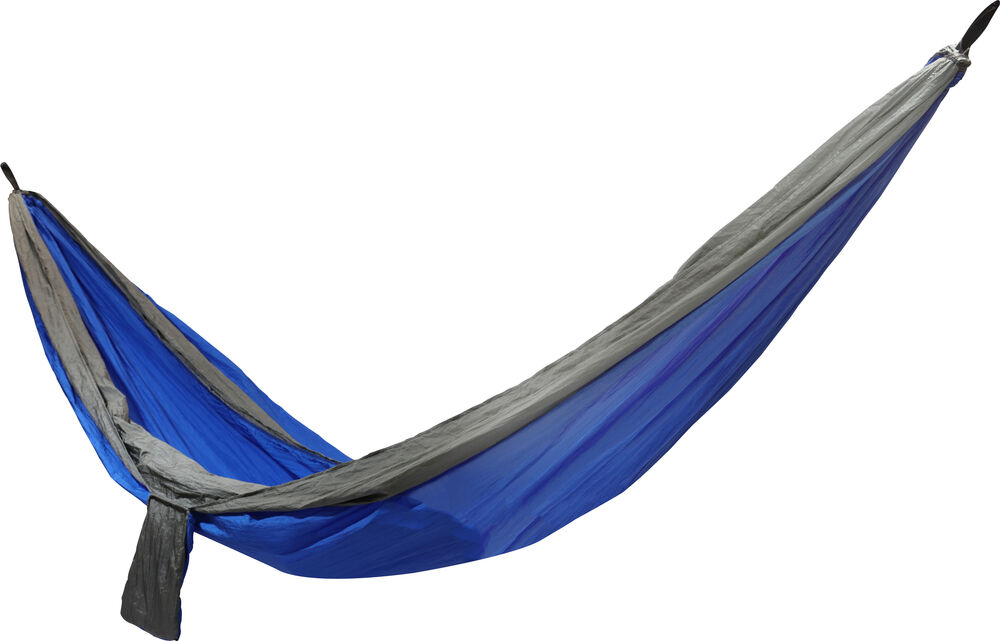 Praktisk hengekøye som enkelt kan pakkes ned i sin egen oppbevaringspose. Hengekøyen er laget av 210T nylon taffeta, kommer med 2 x 2 meter sterke nylontau og 2 stk. 8# karabinkroker.