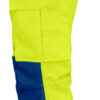 Lettstelt polyester/bomull som holder på fargen og formen. Baklommer med klaff og borrelås. Benlomme med ekstra rom og klaff med borrelås. Tommestokklomme med knivholder. Forsterkninger på knebeskyttelseslommer. C42-64 kan forlenges med 5 cm ved at kanten brettes ned.