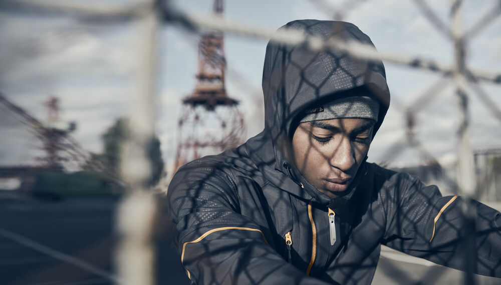• Justerbar hette med elastisk snøring