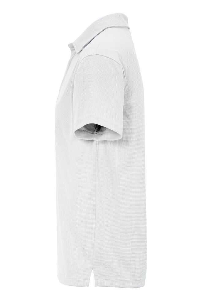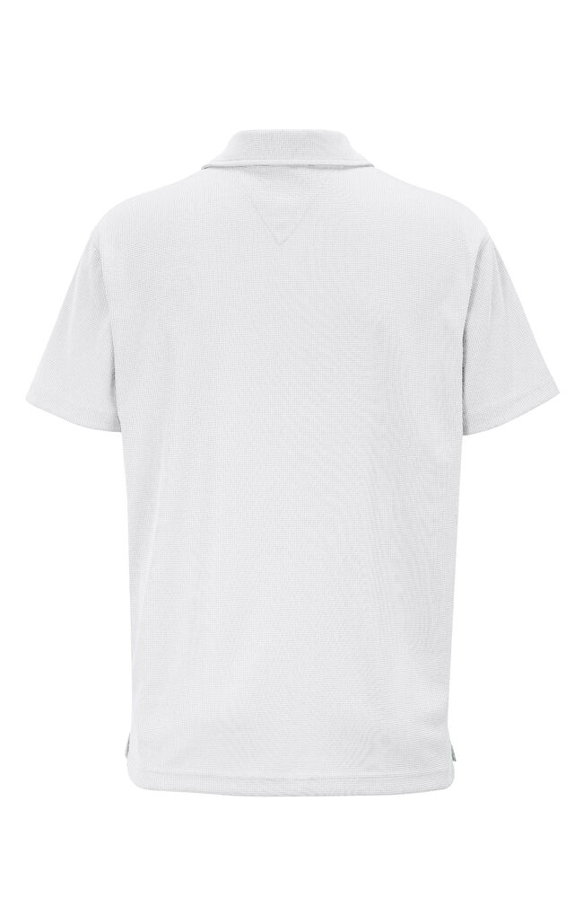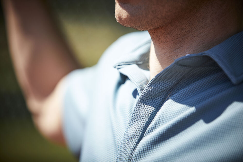 Myk funksjonell polo i et glatt materiale med en struktur som gir et levende uttrykk.