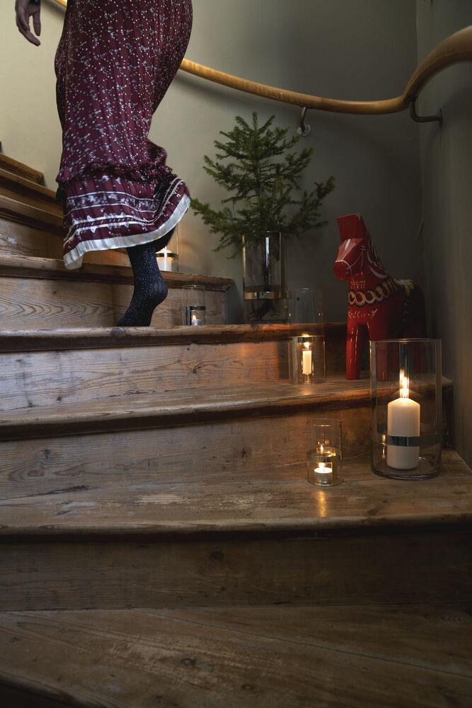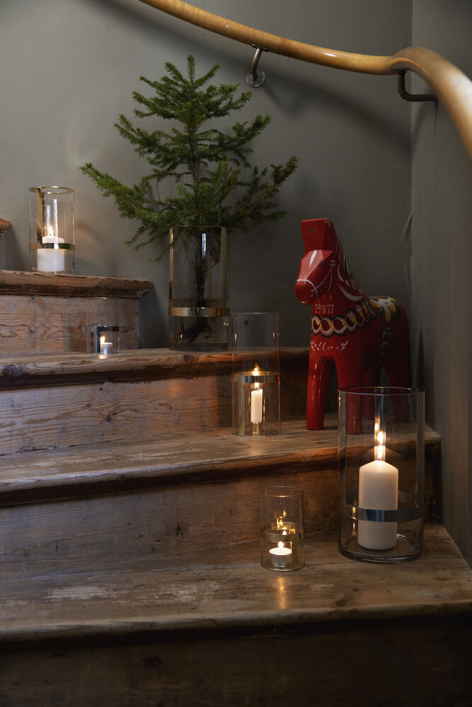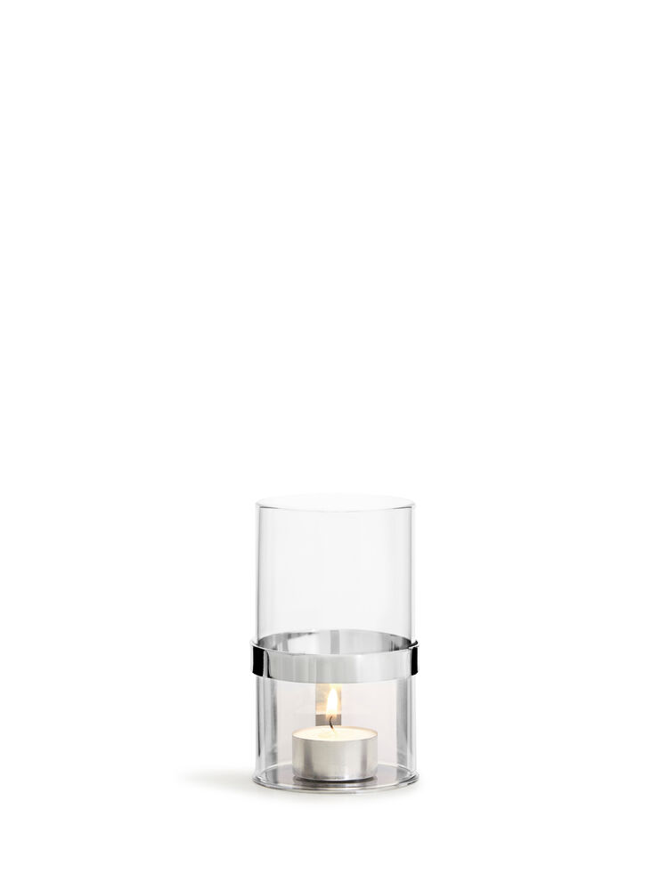 Hold tealight holder er en sjarmerende liten lysestake i munnblåst glass med en metallholder som glitrer i lyset fra flammen. Designet for telys.