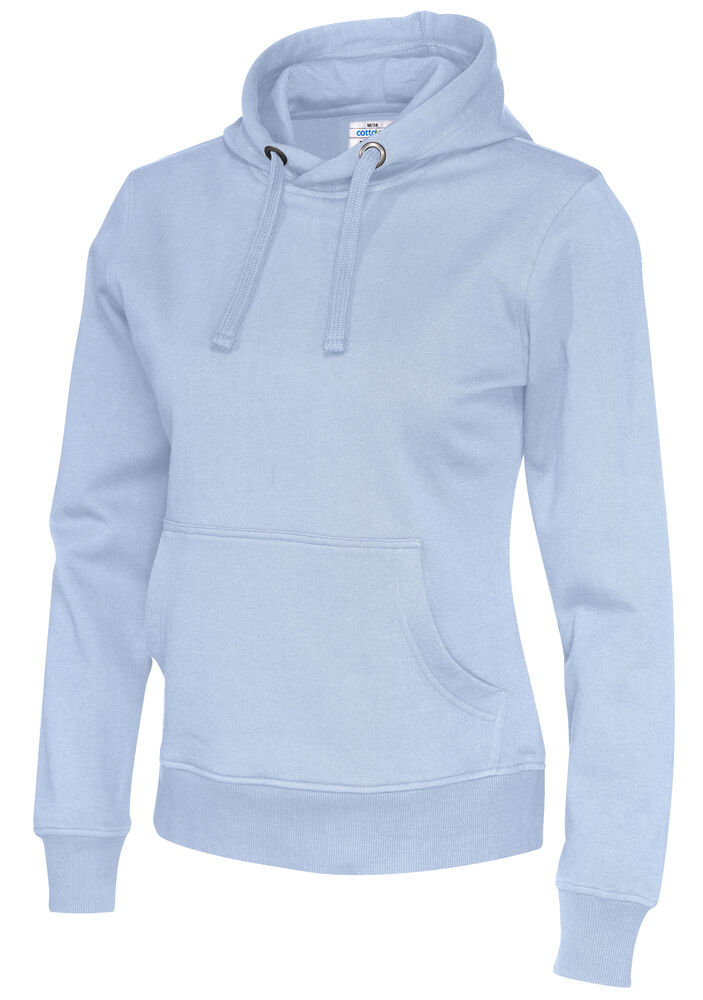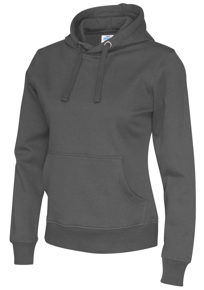 Moderne passform, hette med robust snor og en lomme i front med "inngang" på to sider.