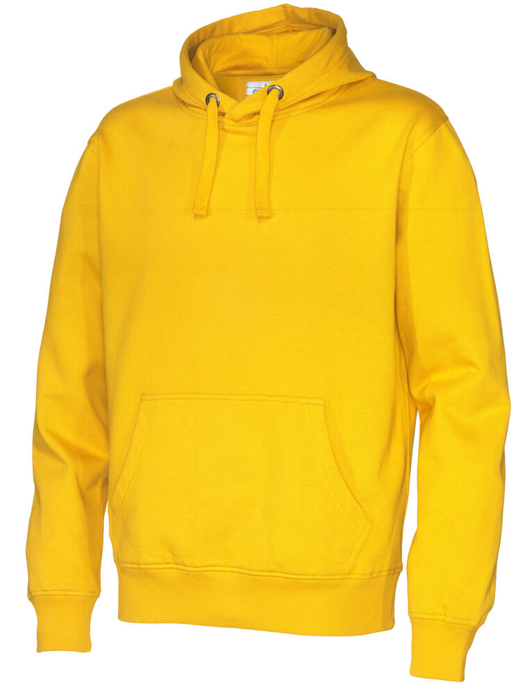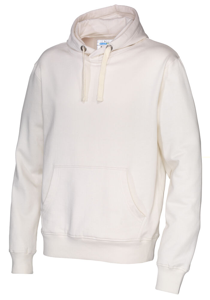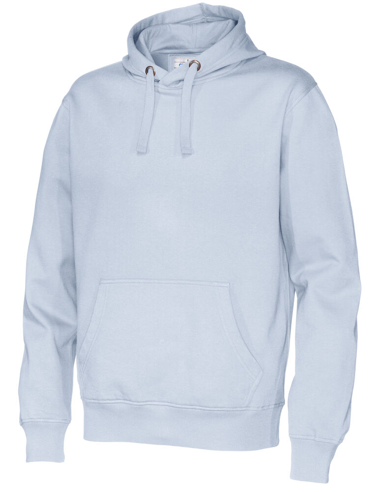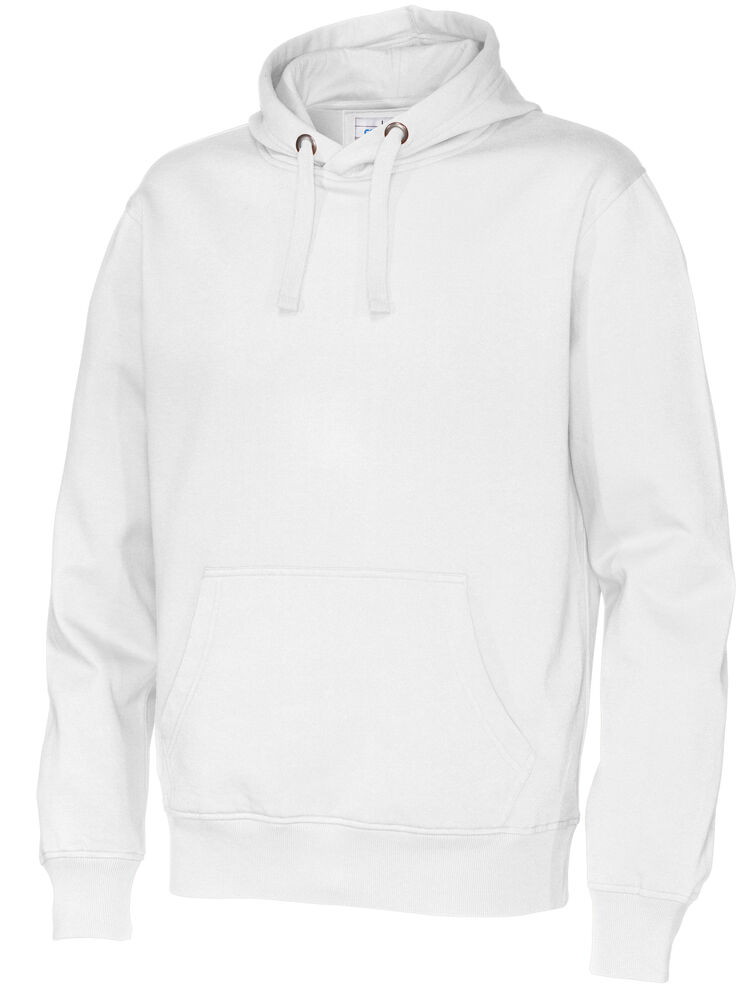Moderne passform, hette med robust snor og en lomme i front med "inngang" på to sider.