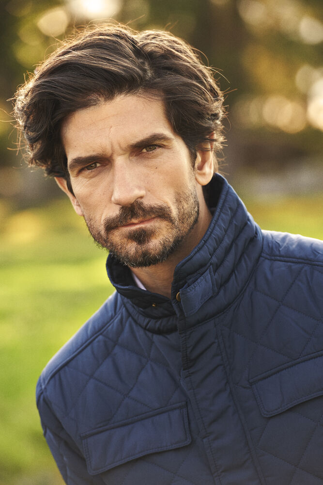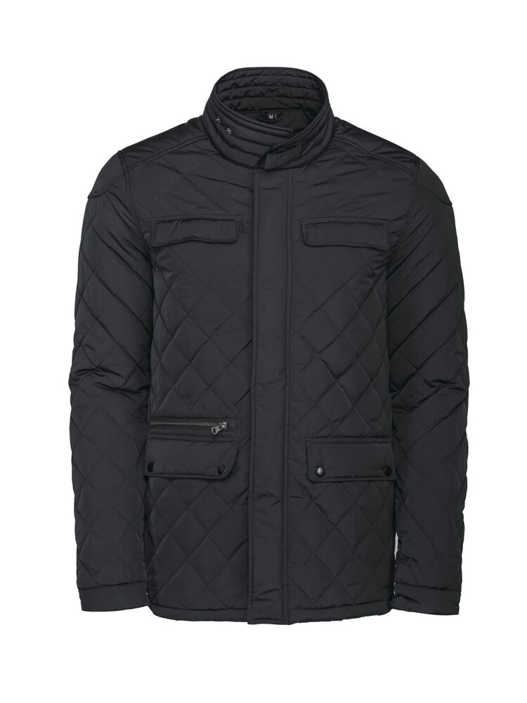 Kviltet jakke med tre lommer i front og to på innsiden. Varmt og mykt materiale i frontlommene for å holde hendene varme.