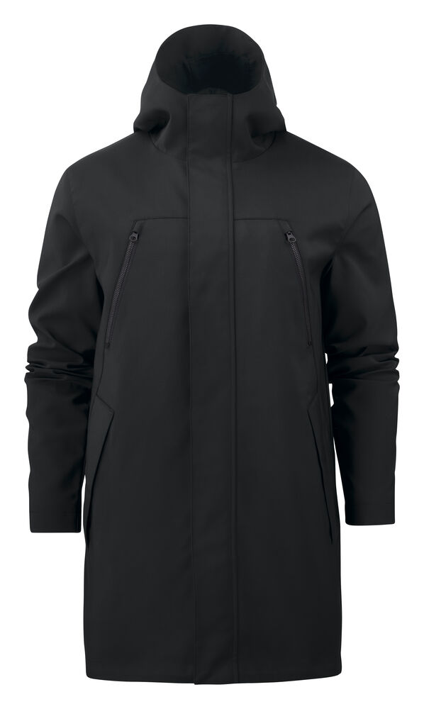 City parkas med hette. Regulerbar i midjen (på innsiden) og i nederkant. Lærlignende 2-hulls stopper i midjen. Glidelås i midten av samme kvalitet. Bomullsfôr (armfôr i nylon). C6- vannavvisende behandling. Brystlommer med mattsvarte metallglidelåser. Innerlommer med glidelås.
