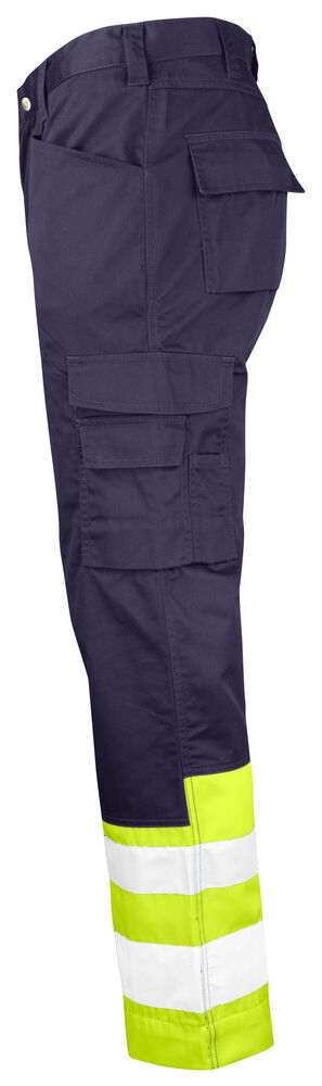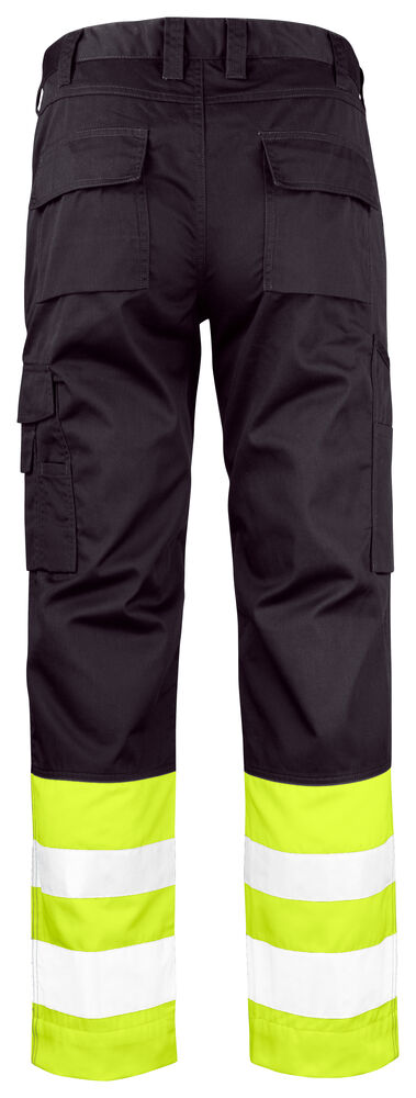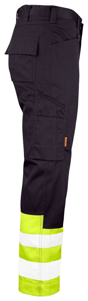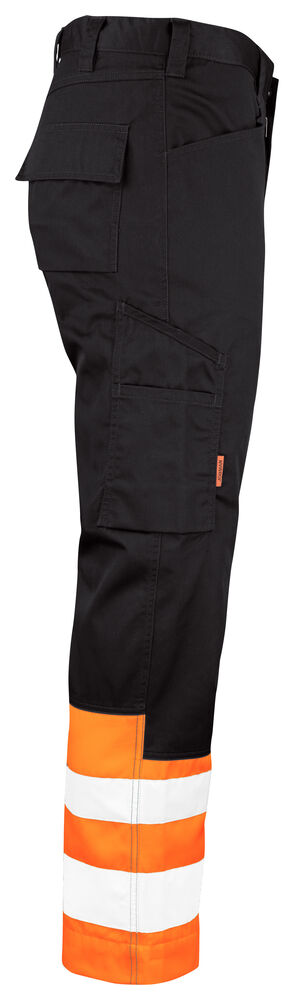 Varselbukse for serviceyrker i lettstelt polyester/bomull. Romslige frontlommer. Baklommer med klaff og borrelås. Benlomme med ekstra rom og klaff med borrelås. Tommestokklomme. C42-64 kan forlenges med 5 cm ved at kanten brettes ned.