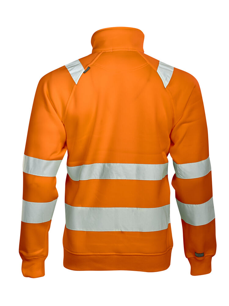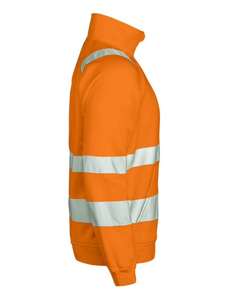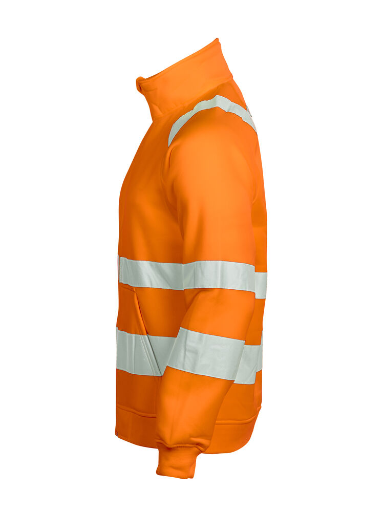 Jakke i børstet polyestertrikot med glidelås helt opp. Brystlomme med hempe for ID-kortholder på innsiden. Frontlommer. Ribbestrikket linning nede og på mansjetter. Reflekser over skuldrene som er synlige fra oversiden.