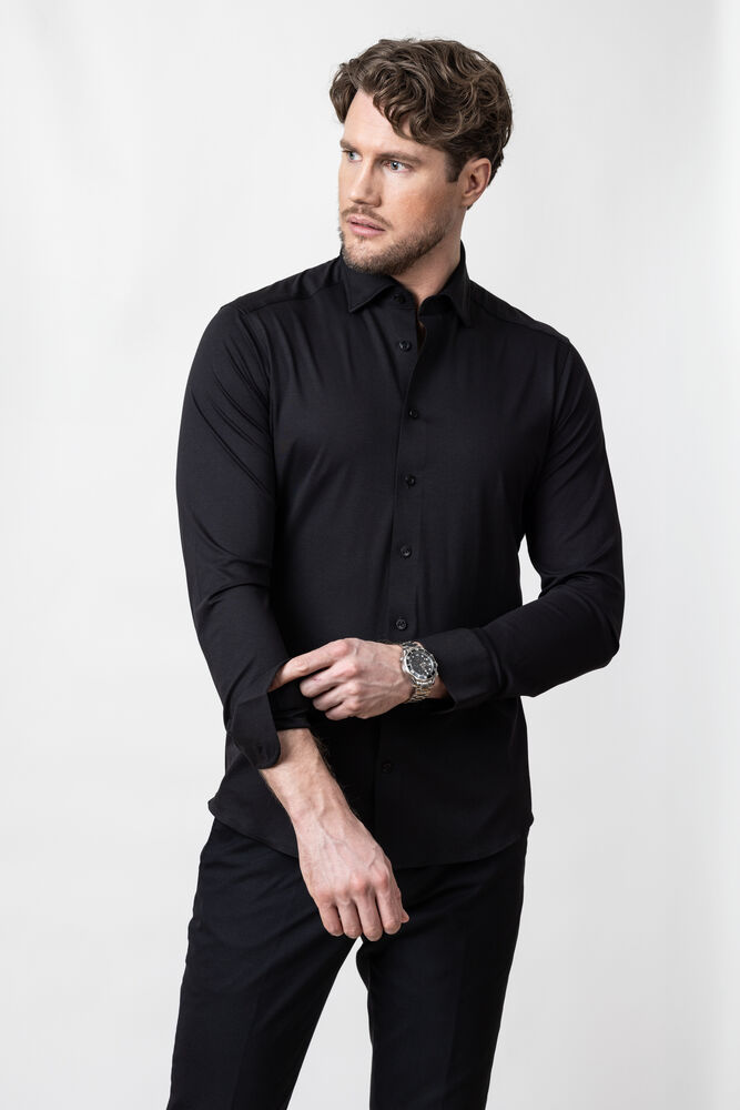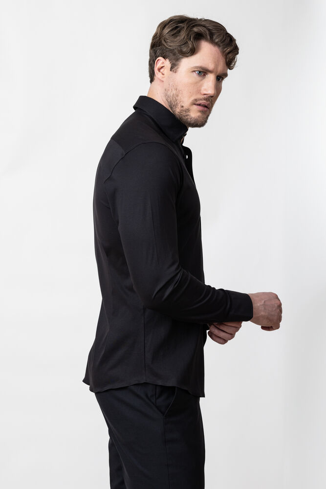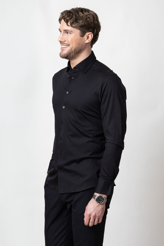 En utrolig komfortabel interlock-strikket skjorte. Moderne klassisk og med Easy Care-behandling som gjør skjorten enkel å vaske. Skjorten har naturlig stretch og ton-i-ton-detaljer. Bruk den med dress og slips på forretningsmøtet, eller som en uformell ytterskjorte i helgen.