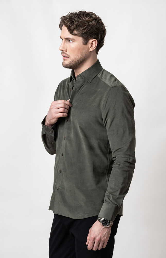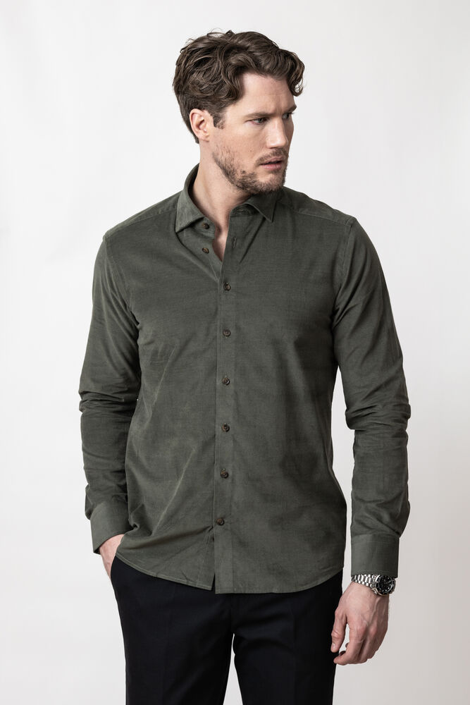 Denne limited edition Cordoroy-skjorten er laget i en "Micro Cord"-veving med en forbedret tekstur, noe som resulterer i en myk, behagelig følelse. Skjorten kommer i tre farger med knapper i hornimitasjon, samt en myk, moderne cut away-krage med skjult button down. Som alltid kommer J.Harvest & Frost-skjorter med split yoke. Bruk Indigo Bow 134 sammen med en uformell blazer – eller en overskjorte – og din Smart Casual-look vil være komplett. Den skreddersydde passformen for menn er midt i mellom Slim Fit og Regular Fit.