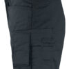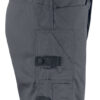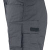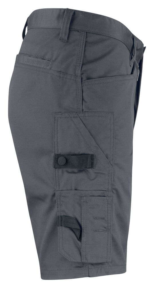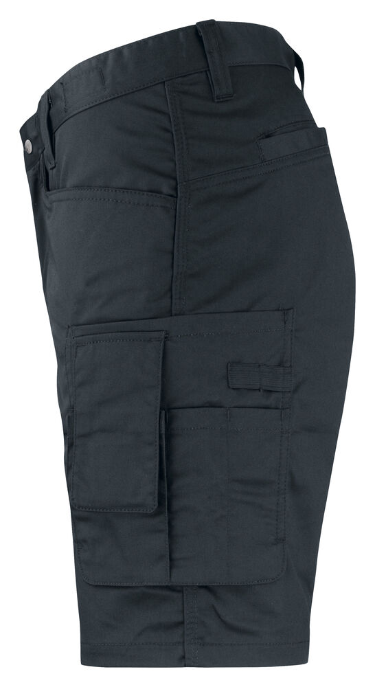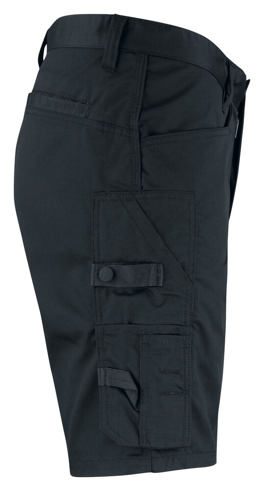 Shorts i mekanisk twill som er et slitesterkt og litt elastisk materiale. Tåler vask på 85 grader ifølge test. Polyester-/bomullsblanding er et lett og behagelig materiale å ha på kroppen og arbeide i. Innsydde frontlommer og baklommer. Forsterket tommestokklomme med løs underkant og knivknapp. Benlomme med rom for mobiltelefon.