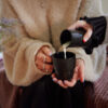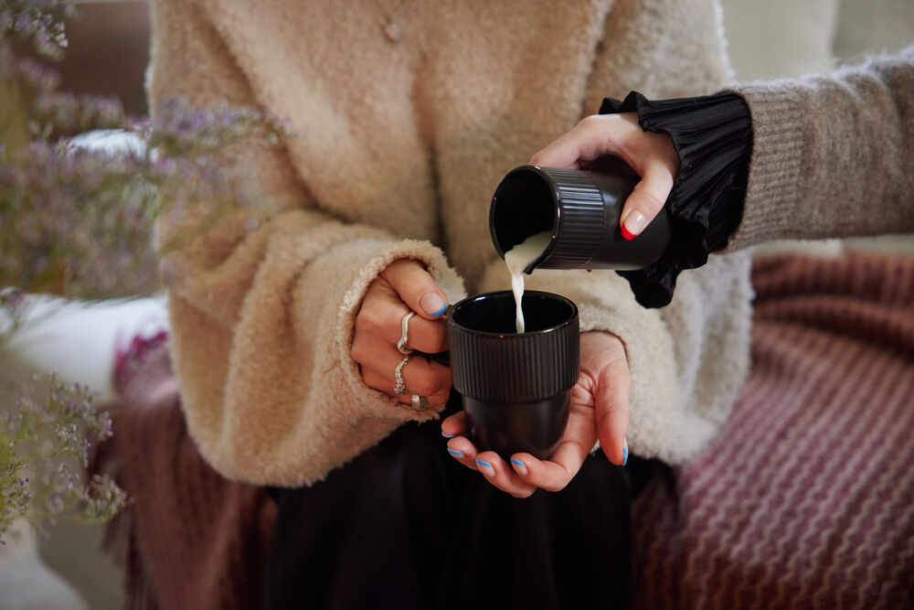 Akkurat som koppen i samme familie, har Inka-muggen fått en pen silhuett for å passer inn i kolleksjonen. Med myke kanter og en karakteristisk stripe, blir den fort en favoritt både til melk og andre drikker eller sauser. Finnes i fargene beige og sort som matcher både kopp med og uten hank. Laget av steingods. Tåler vask i oppvaskmaskin. Designstudio Sagaform.