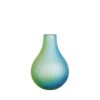 Håndblåst i Kosta. Disse dråpeformede vasene bruker et flerfarget underlag og optisk mønster. En teknikk som gir glasset ulik tykkelse under prosessen. Dette gir liv og et spesielt lysspill i glasset. Vasene minner om små smykker i nøye utvalgte fargesammensetninger.