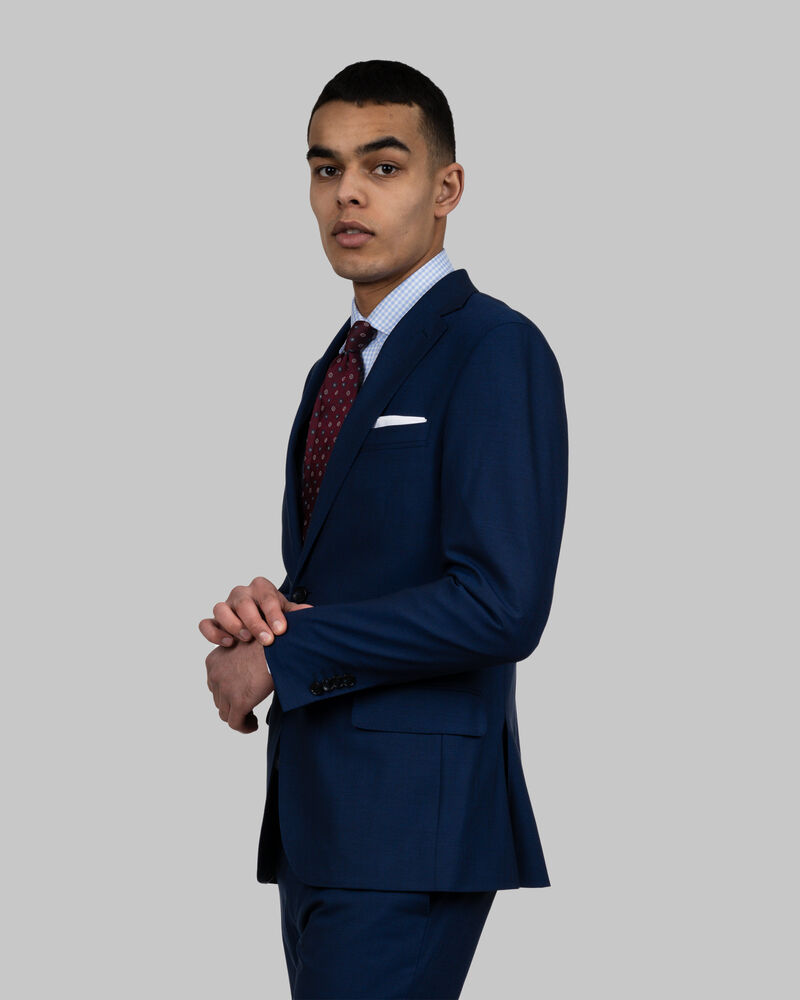 Klassisk blazer med to knapper og avslappet skulderparti. Materialet er nøye utvalgt. 360°-stretch og vannavstøtende utside samt antibakteriell behandling som gjør blazeren perfekt til arbeid og fest. Stretch gir komfort og materialbehandlingen mindre skrukker.