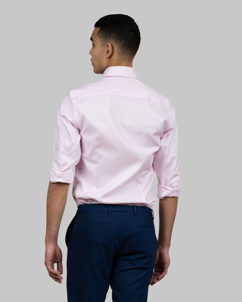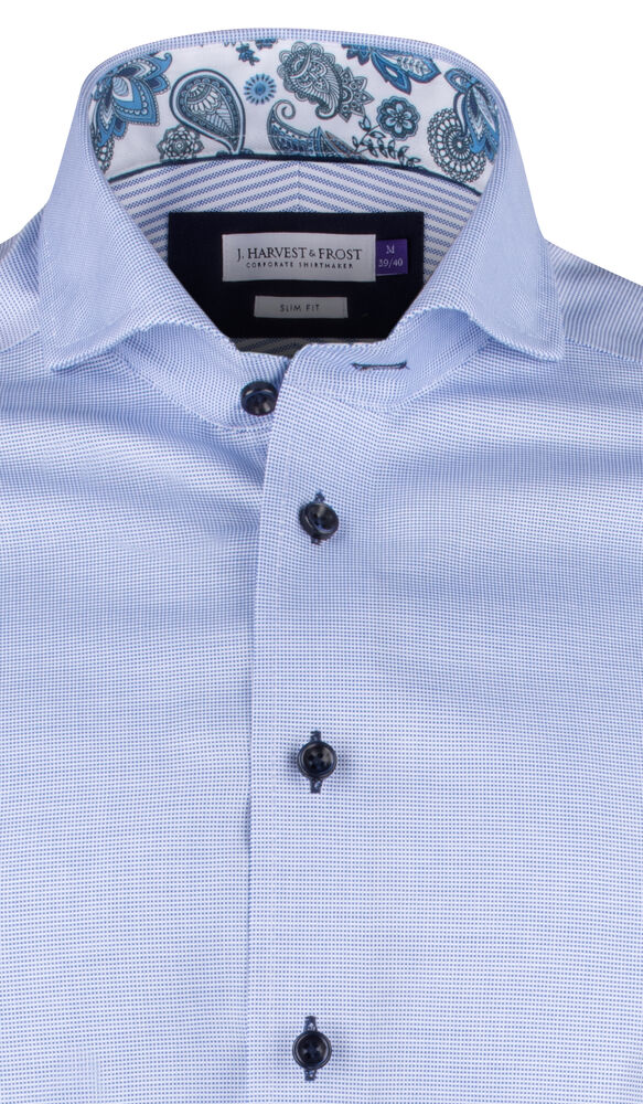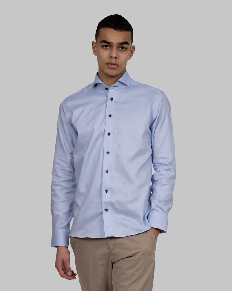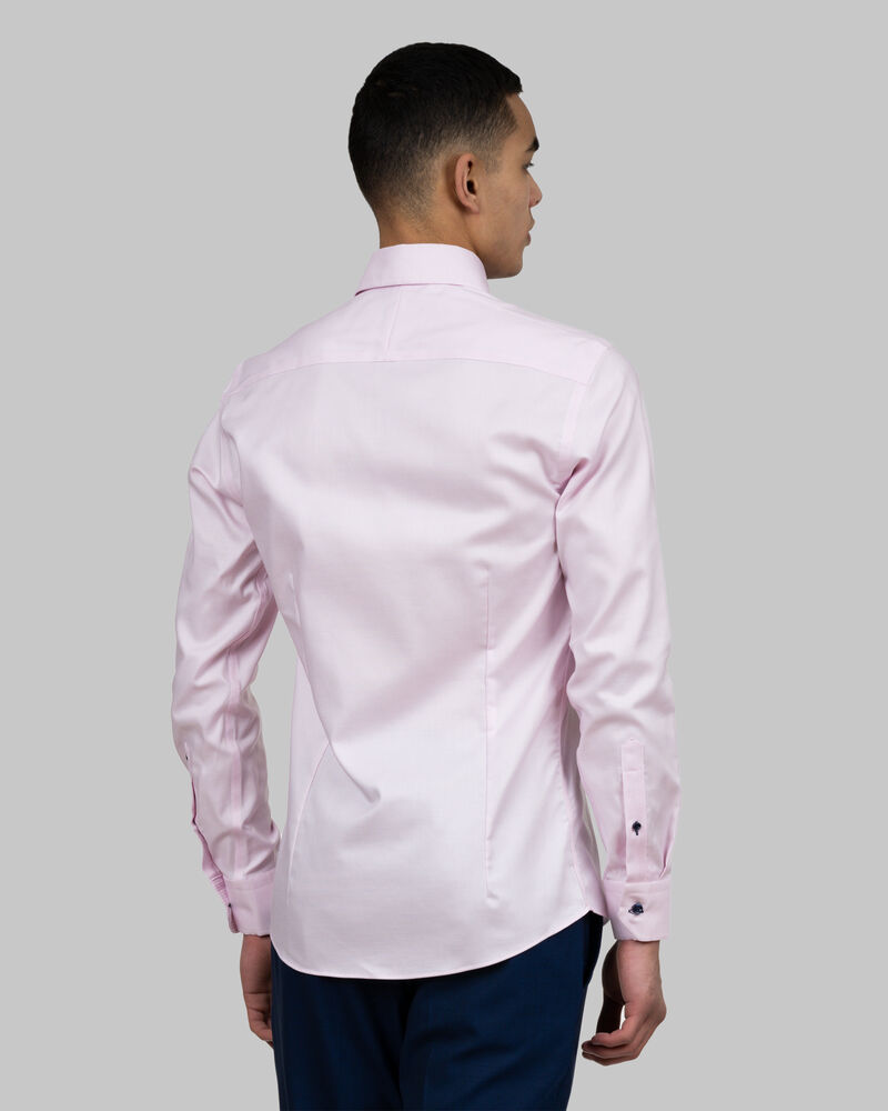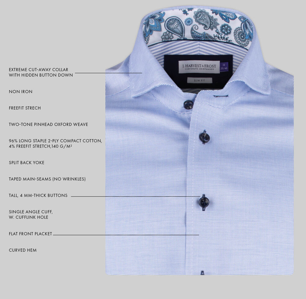Skarp, fargerik og leken er definisjonene på Purple Bow 145. En tofarget pinhead oxford-veving gir skjorten en luksuriøs struktur, og den ekstreme cutaway-kragen og de moderne, fargerike kontrastdetaljene spiller videre på den luksuriøse følelsen. PB145 har den herlige blandingen av STRETCH & NON IRON-effekt som trolig er unik for skjortene våre. Dette er Purple Bow på sitt beste!